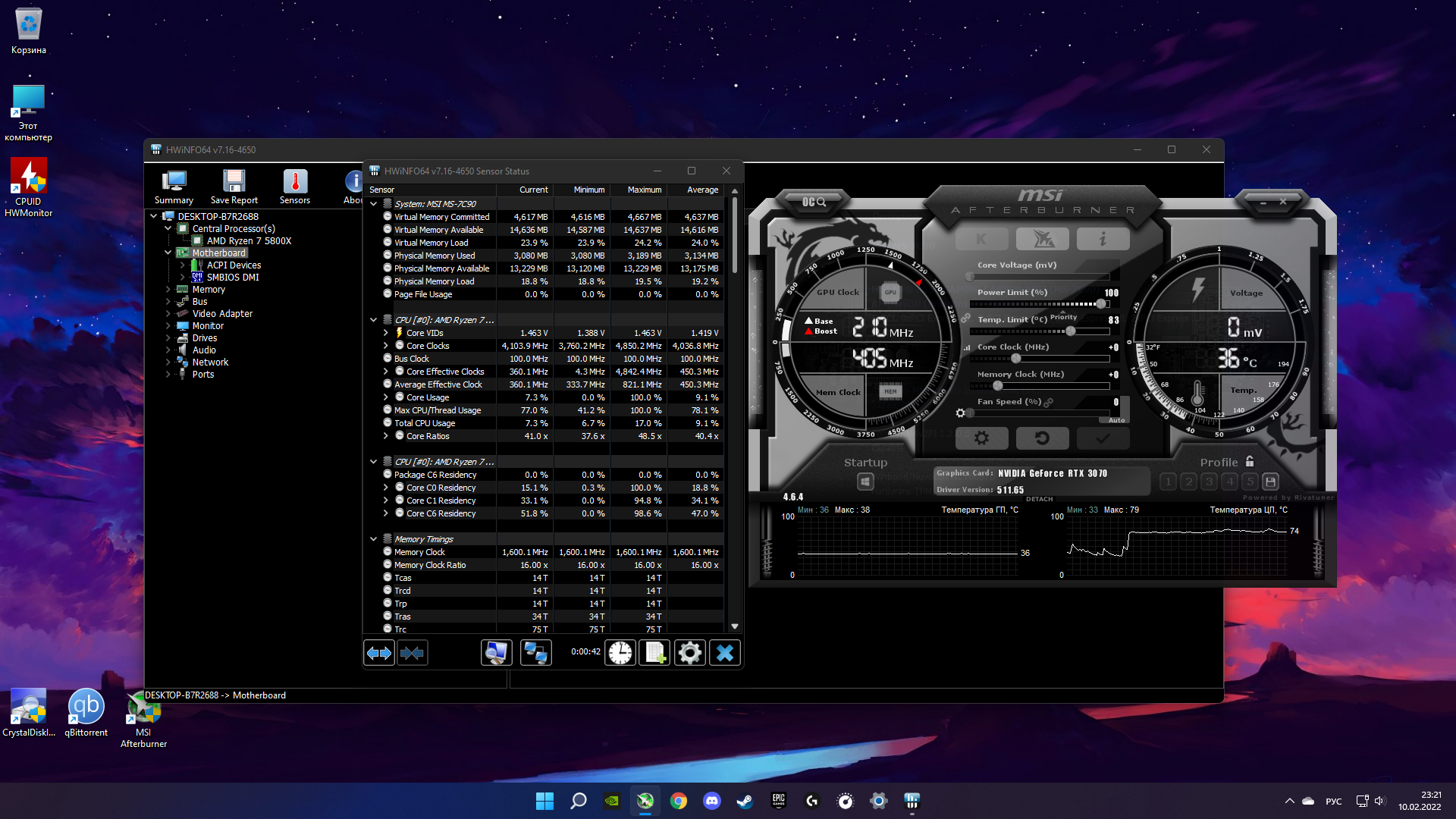 Испытываю сейчас серьезную проблему. План электропитания глючит после определенного времени после переустановки винды(грешу на план ибо температура резко понижается если сделать максимальное состояние процессора 50%, но это вообще не вариант) и проц уходит за 70-75 градусов в простое(Ryzen 7 5800X), а потом смотрю в аиде, а там в простое напряжение на проц 1.455-1.5V стоит. Я такой охреневший от происходящего начал копать глубже. Сначала грешил на материнку, мол она вольтаж завышает. И в биосе действительно такой же вольтаж стоит, но в винде было все збс(нормальный вольтаж), до недавнего времени. Теперь такой же вольтаж стоит в самой винде как и в биосе и нагрев проца в простое с 30-33 градусов сразу до 75 стабильно идет и не снижается. Причем после переустановки винды все ок было, а спустя буквально день-два и опять по новой. Я хз в чем проблема! Либо дрова какие конфликтуют с планом электропитания либо проблема в самой материнке, хотя не в ней раз после переустановки винды все ок было, а потом звиздец начинается. Пробовал перепрошивать биос, сброс настроек биоса в дефолт - один хрен, ничего не помогает. Хз куда копать даже. Конфиг полный: MSI RTX 3070 Gaming X Trio, Ryzen 7 5800X, MSI MPG B550 Gaming Carbon WIFI, 16GB ОЗУ G.Skill(2 планки). Мб кто знает, что за фигня твориться? Может быть вообще проц виноват? Может быть у кого такая фигня уже была? Проц кстатие без нагрузки до 70-75 гр уходит. Ну и еще, даже если понизить вольтаж в биосе на проц, то ровным счетом все равно не чего не меняется(все так же в простое без нагрузки проц до 70-75 гр уходит на постоянку хотя и в самой винде пишет правильный вольтаж после его фиксации)