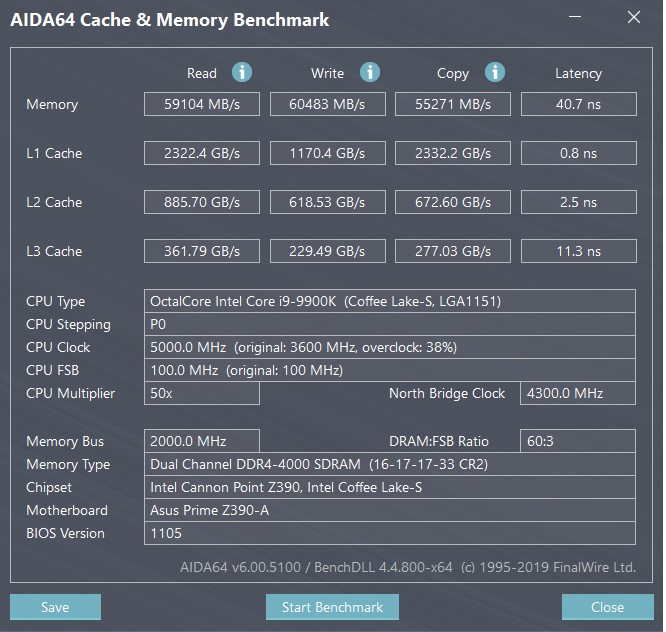 покажи плиз тайминг конфигуратор и тест аиды по памяти , а то что то у меня на 4.7 и с памятью 4000 такие результаты как у тебя , так это при 250вт и 100+ градусах на скальпированном проце