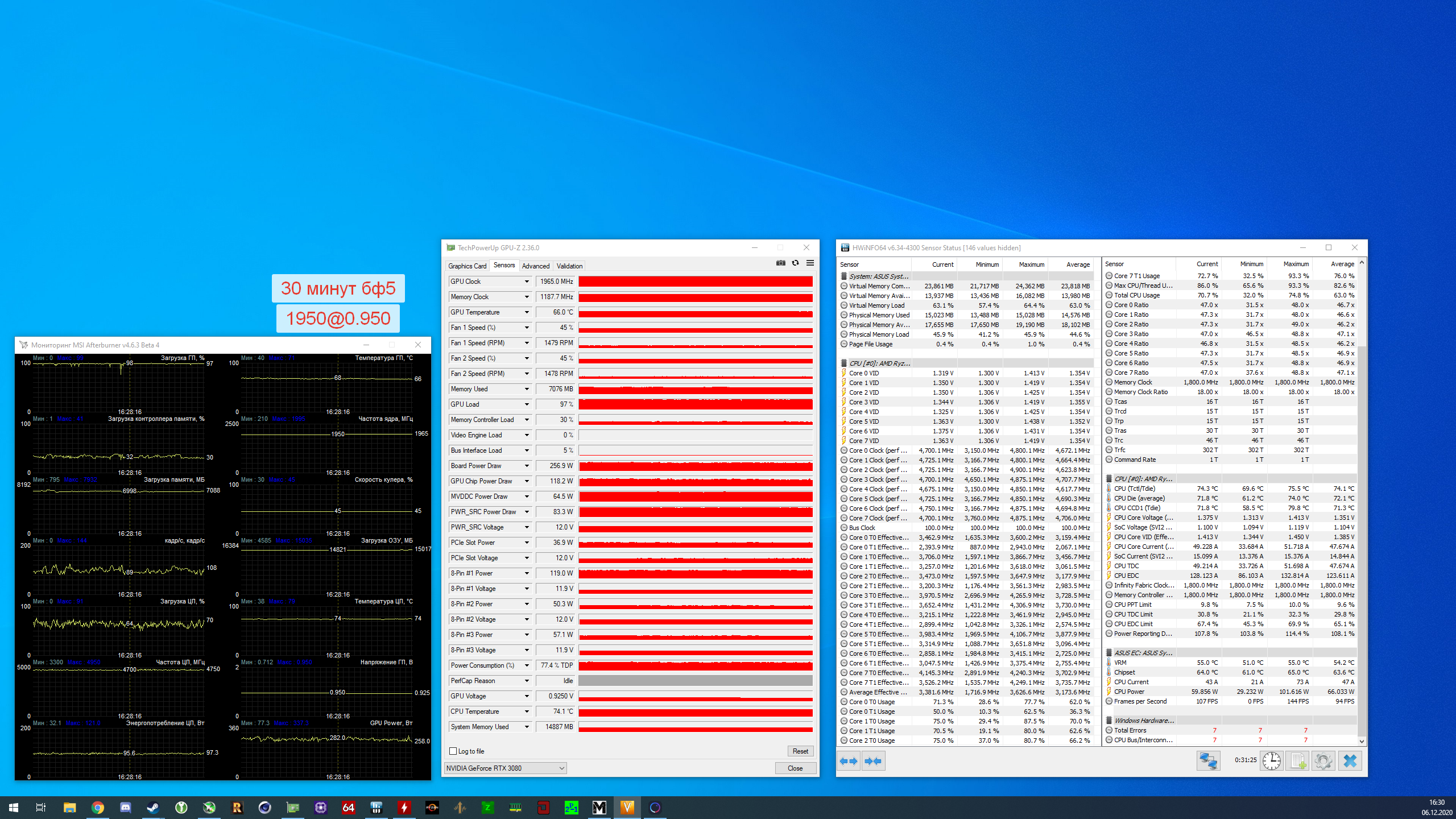 Вот после 1 часа игры в BF5 (на скриншоте коммент про пол часа, но это я с частотами видяхи игрался по пол часа каждый режим тестил) В общем температуры были 68-75, в зависимости от карты.