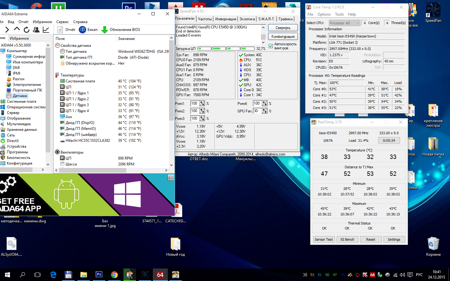 А кулер, судя по оборотам при температуре боксовый сток? У вас Х5460, боксовый стоковый кулер и при относительно "лайтовой" нагрузке(на самом деле типичной нагрузке - отражающую реальноую нагрузку) ~50 градусов цельсия? Я не верю. 120w TDP?!