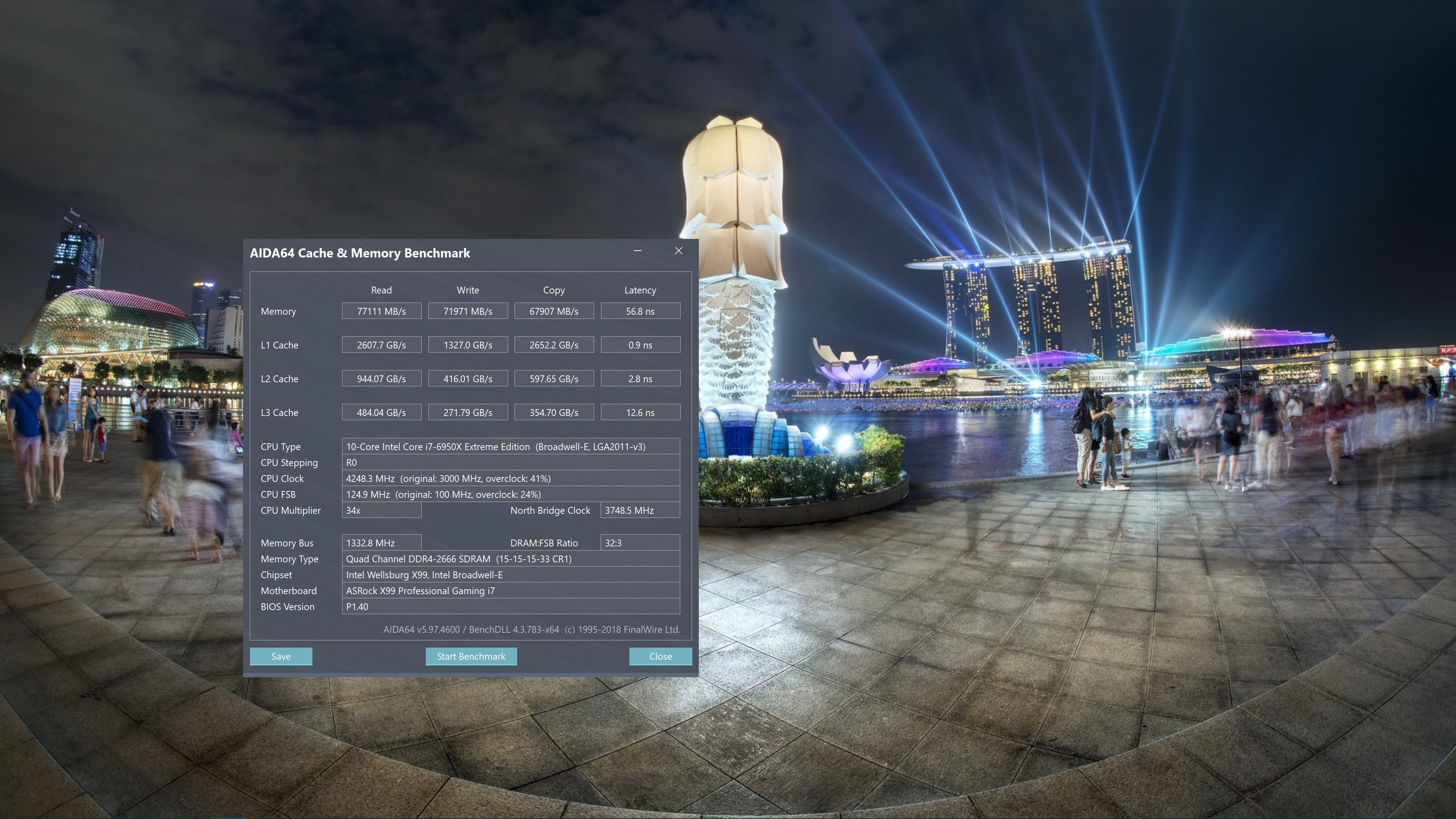 Да вполне достойный результат для не вусмерть разогнанного 6950х. И тут дело не в матери, на твоей мамке вполне нормально работает память с частотой под 3200. У меня такая же в запасе лежит. Я её запускал при проверке после покупки, на ней мой кит при страпе 125 в паре с 5960х@4.4 Cores, Cache@4.2 влёгкую запустился на 3000 мгц и проходил тесты AIDA64. Просто разгон памяти на Asrock весьма специфичен (при страпе в 100 на ядра и кэш нужны одни напруги, при изменении страпа до 125 и проц, и кэш захотели больше) при превышении частоты памяти в 2666 мгц. Стабильность наше всё.