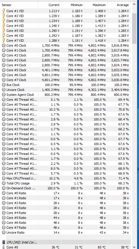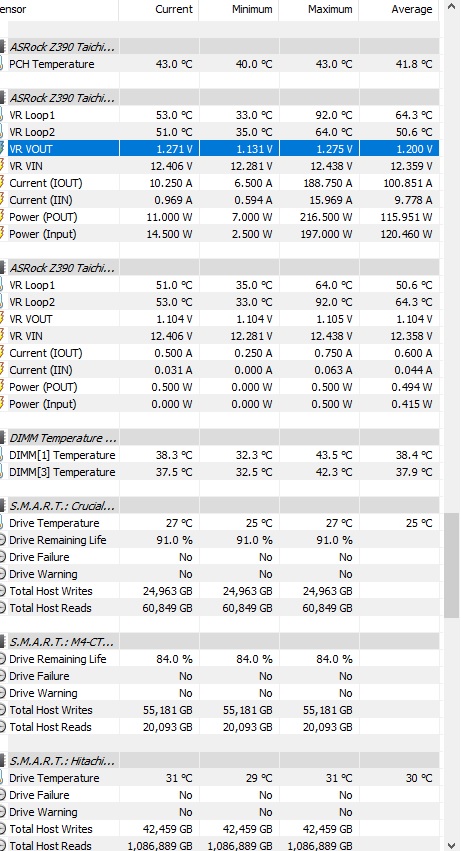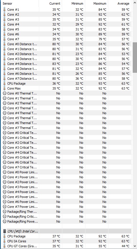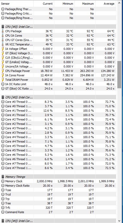 miwa Всё отлично. P.S. И одну вещь скажу, ты только не обижайся: в HWInfo в левом нижнем углу есть синие стрелки, если их нажать, то на одном экране поместится 4 колонки.