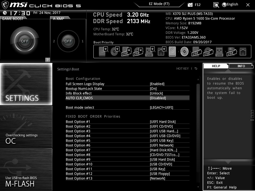 Зачем? она и должен быть выключена, функция отвечает за автосброс cmos когда система не может зайти в ос и перезагружается. Никакая софтина от МСИ случаем не стоит?