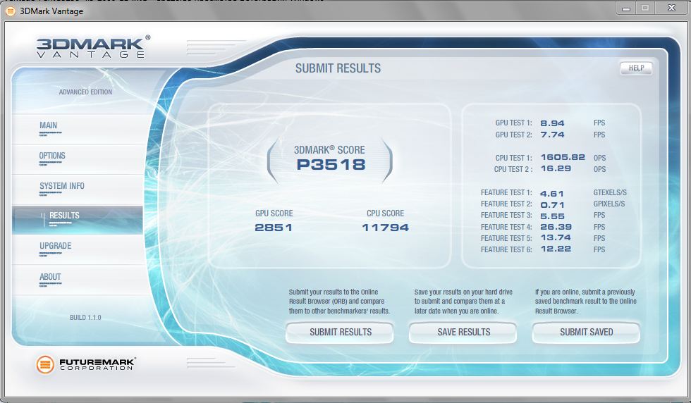 То есть в марках скорость от разгона масштабируется более-менее хорошо 2300 в первом случае 2800 во втором (GPU Score). На частоте 1650 было что-то около 3200 баллов. Результаты 9600GT точно выше 4000 очков в вантейдже.