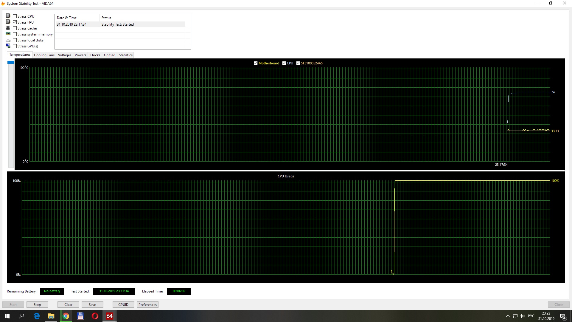 Вот еще с аиды тест фпу. Насколько я знаю, самое греющее, что у меня есть на компе. В стресс цпу было 53 или 54 градуса. Дольше гонять сегодня нет времени, если кому-то что-нибудь будет интересно по температурам - сделаю.