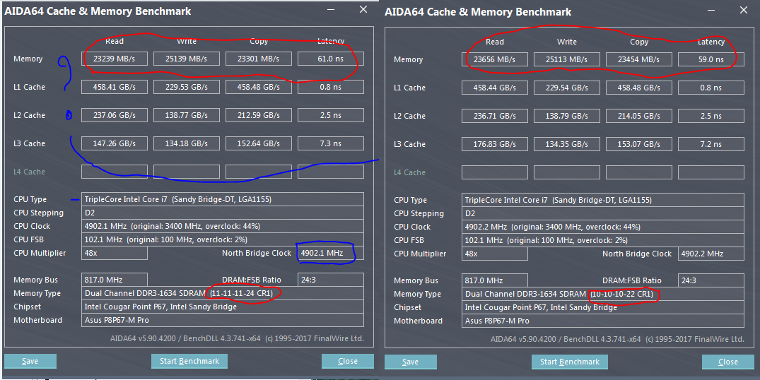 temrus63 скинь мне свою версию аиды, проверим. может потому что 3 ядра. много от чего может зависеть, я вот биос обновил и латентность стала как будто хуже. например сейчас у меня при памяти 1600 9-9-9-26 латенси стала почти 70. ща заценю что там в 5.90.4220