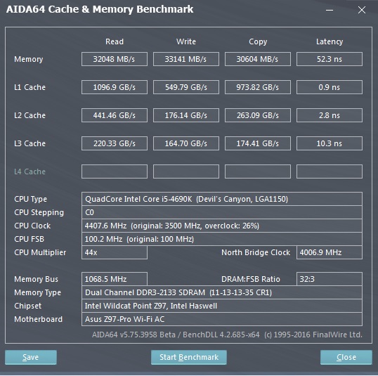 IvNorco Вообще в тесте кеша большая погрешность, т.е. раз на раз не приходится. Результаты памяти по вранению с кэшем значительно плотнее от прогона к прогону. Кэш у меня на 4.0ггц работает, ты ж видишь там указано: у нас 4000мгц, у тебя 3800мгц
