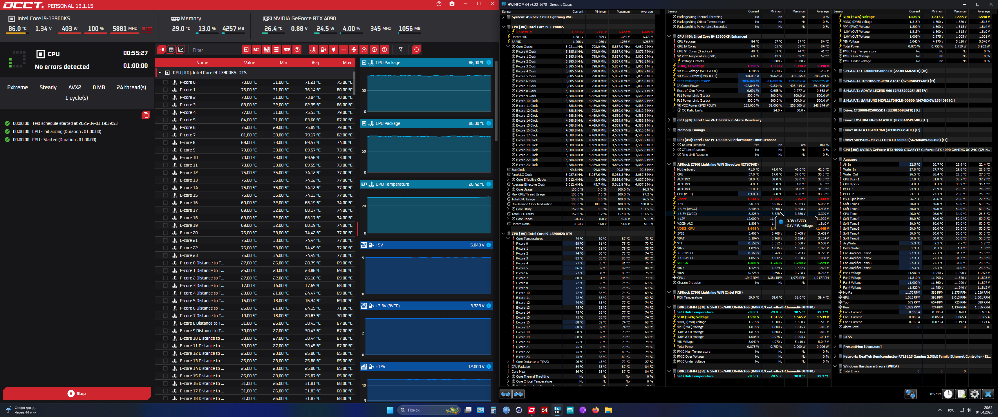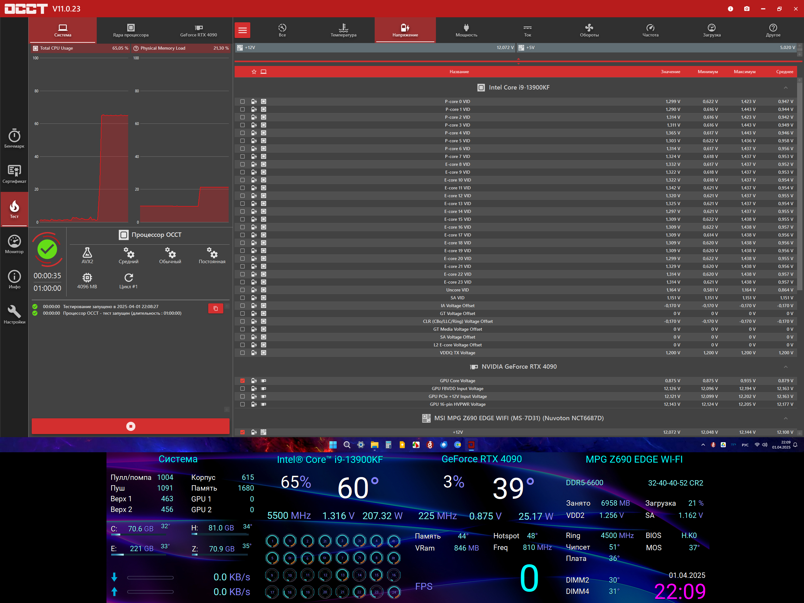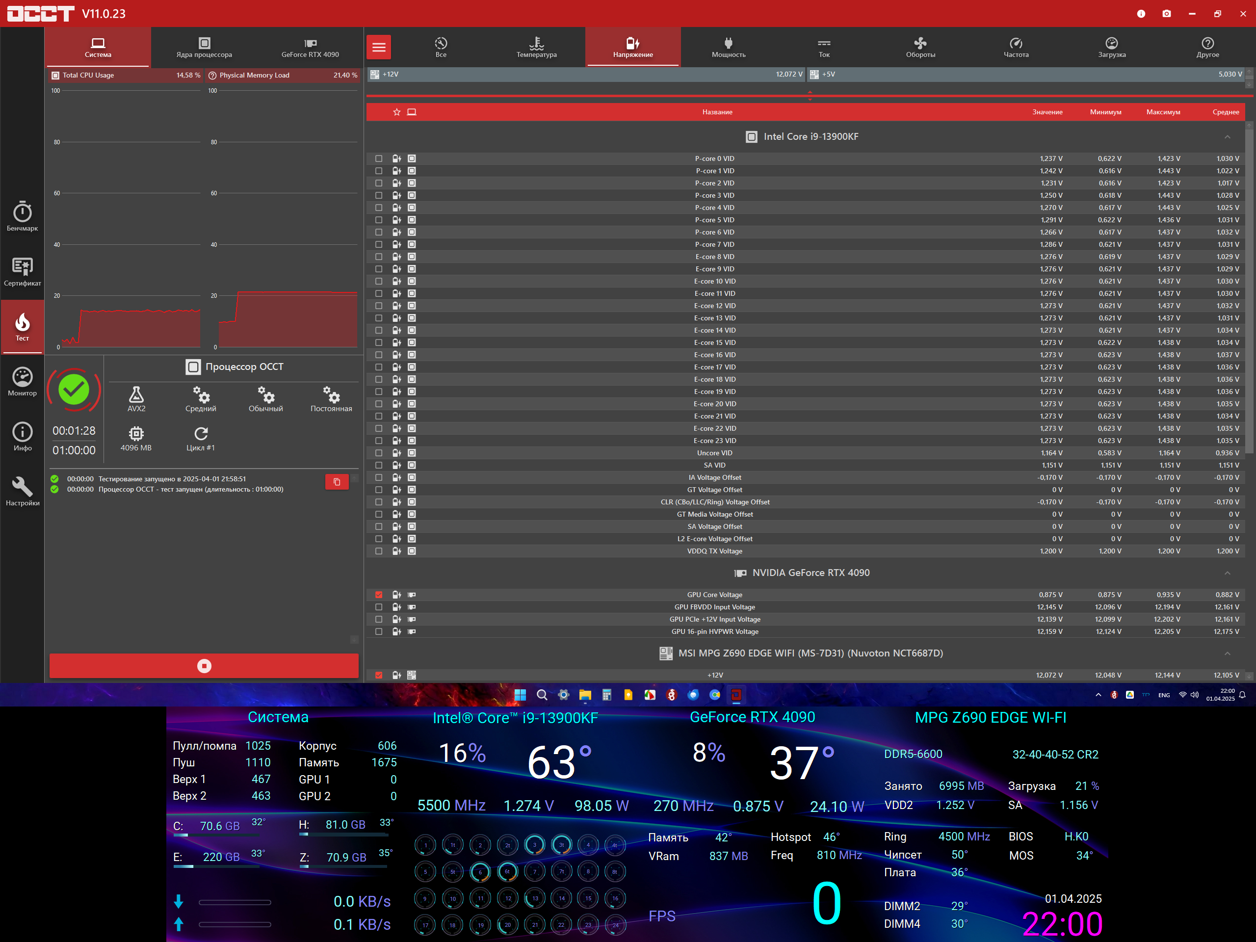 В сильной нагрузке подгоняем оффсетом под мои стабильные 1,256В. HWINFO не запускал. Можете верить показаниям снизу, это аида, а панельку рисовал сам и там каждый датчик перепроверен и сверен с HWINFO уже тыщу раз.