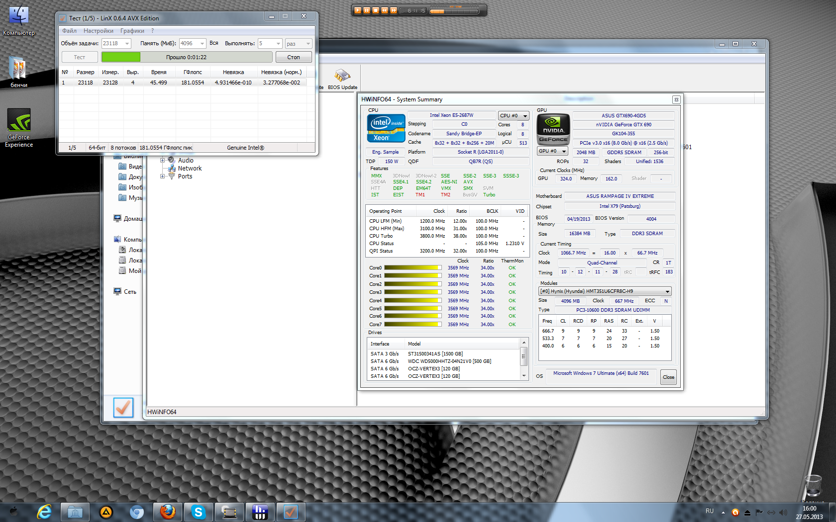 Мать: ASRock X79 Extreme3 LGA2011 Проц: Xeon E5-2665 ES 8-Core 2.40GHz Полет нормальный! Гонится до 2,8 легко, работает стабильно.