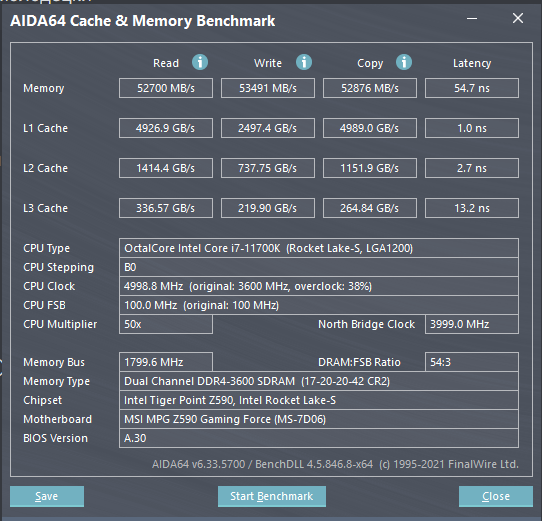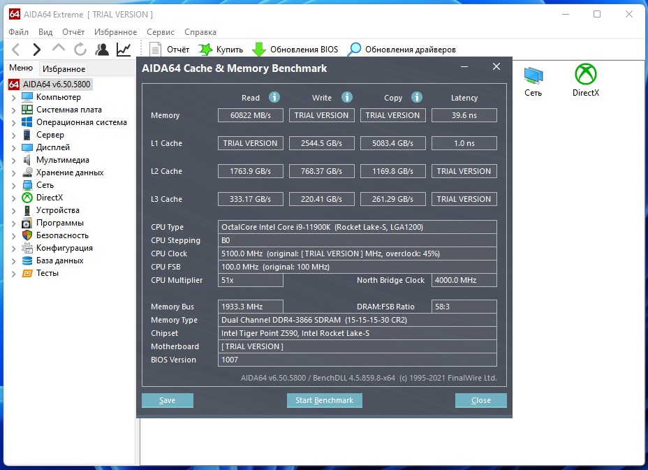 11600 на Asus tuf B560m в аиде выдает низкую скорость кэша, порядка 1500, что чтение, что запись, что копирование. система виндовс 11. и нигде нет упоминаний что в 11ой и интелы по кэшу ломались, или я что то пропустил или бракованный камень?