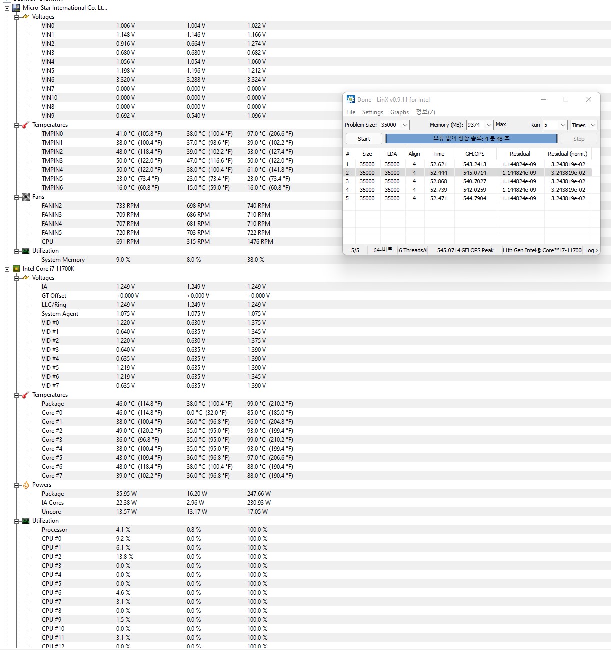 У меня как пара месяцев 11900K BOX на 4900. И, честно говоря, Линкс на данный момент не проходит. Кодирую почти каждый день, синек ни разу не было. Насчет охлада и температуры: сперва стоял Thermalright Silver Arrow IB-E Extreme Rev. B - завывал что уши резало. И можно сказать что на 11700К, что на этом 11900К разницы никакой не вижу с Corsair iCUE H150i, только напруга на проц чуток поменьше стала и частоты поболее. Уж не материнка мозги канифолит? Ну а с памятью у Jensen Huang понятно, гонится лучше, да и напруги на VCCIO2 такие ни к чему хорошего не приведет, деградирует.