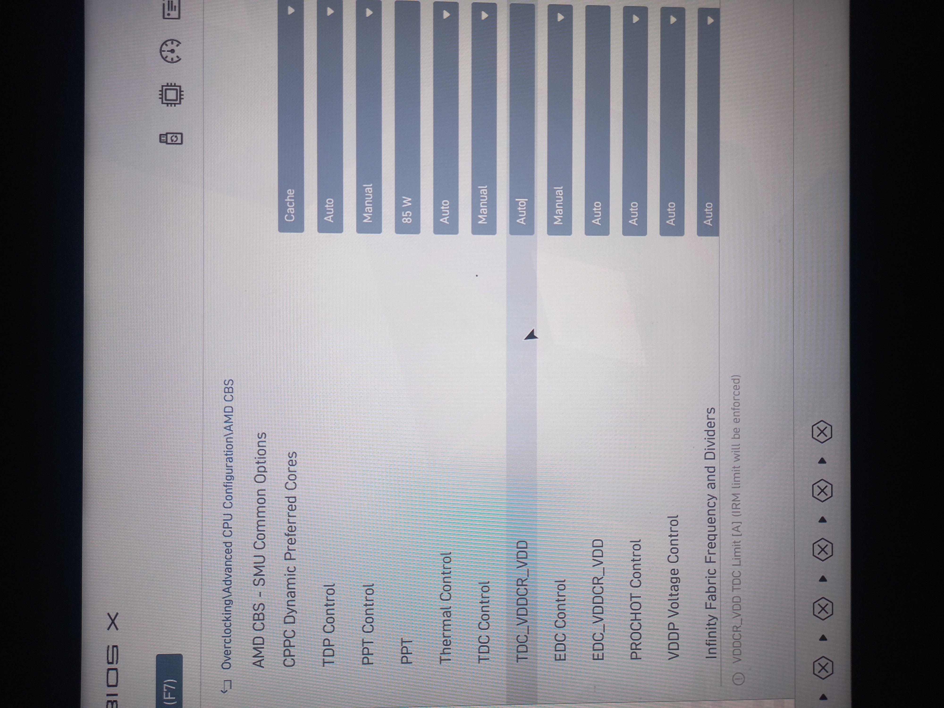 7800X3D SOC, PBO, PPT, TDC, & EDC Settings for cooler thermals