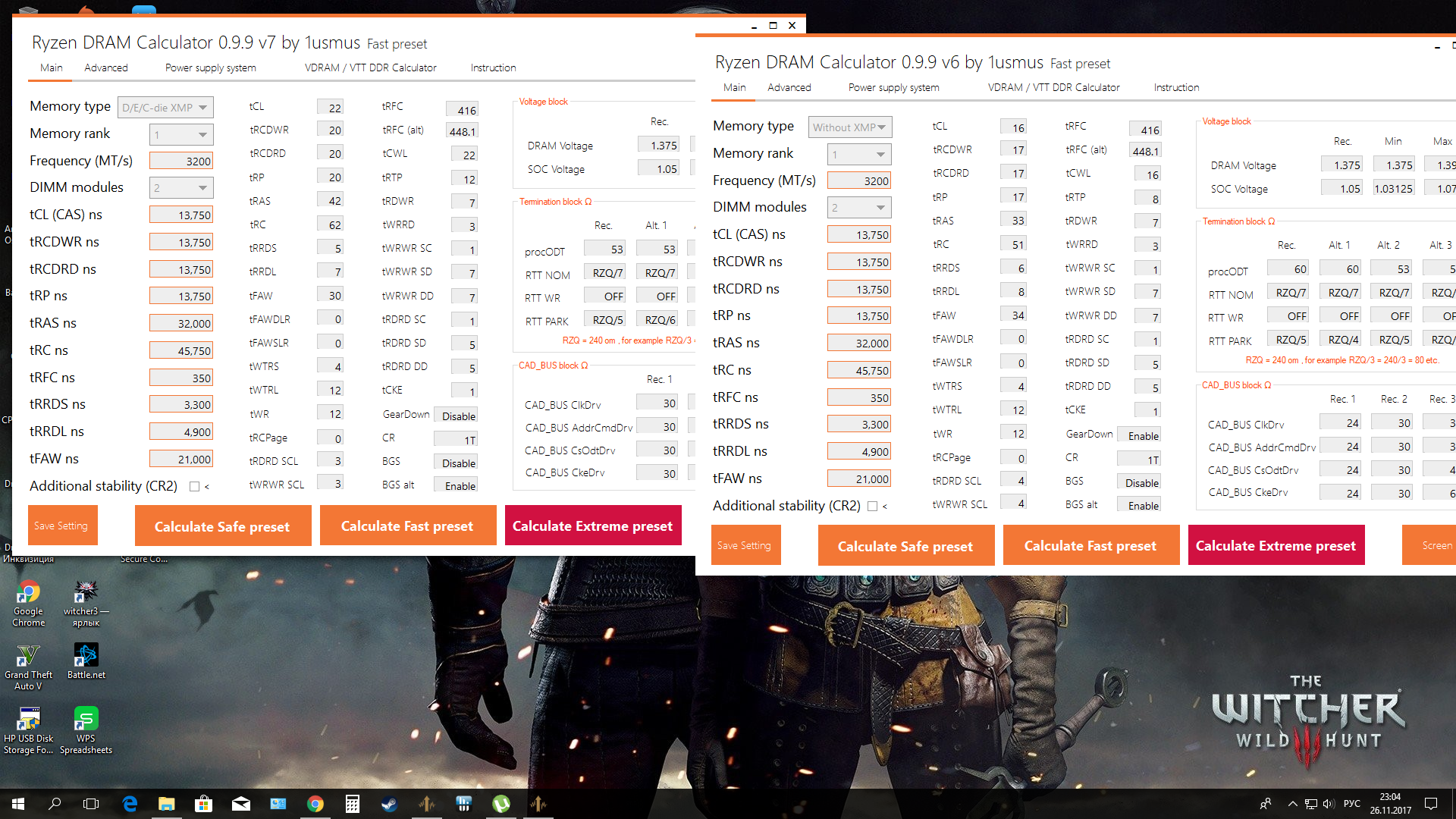 я ввожу корректно: Дуалранг, b-die, 2 модуля, частота 3200. procODT пробовал разные - 68, 60, 80, АВТО. Остальные настройки выставлены из калькулятора.