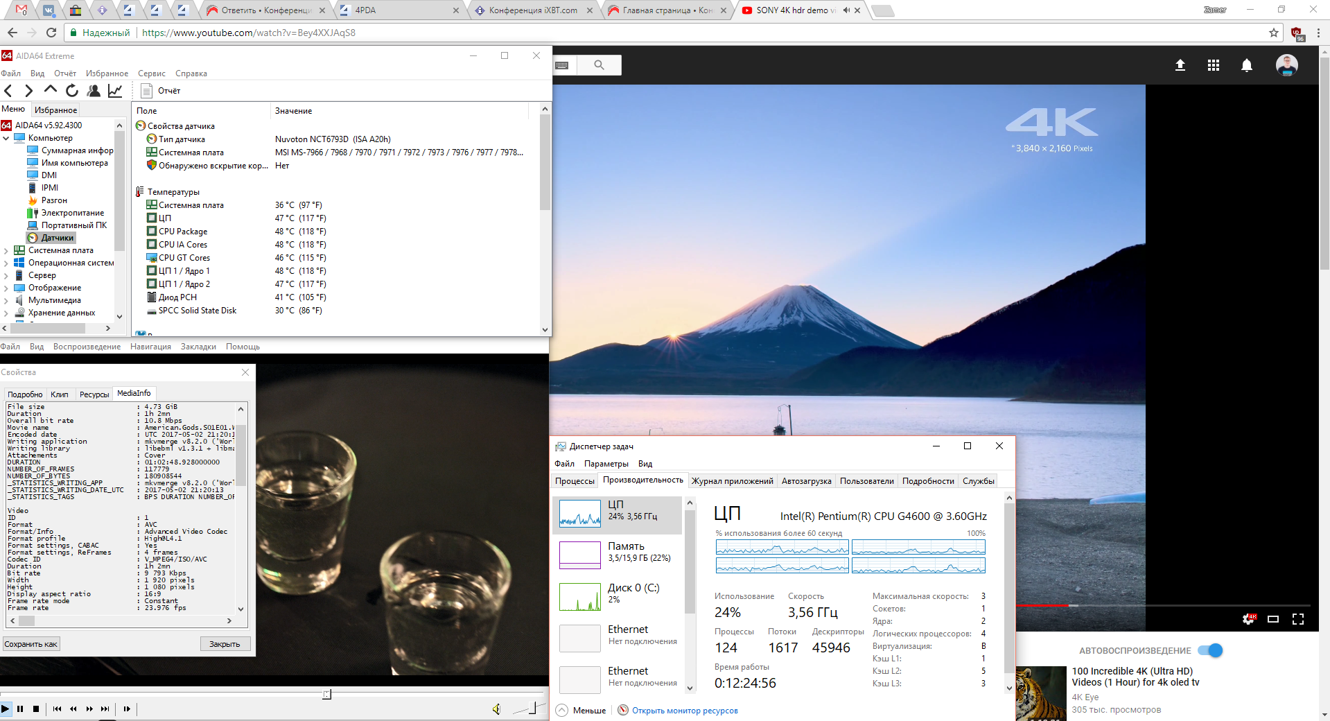 При температуре в комнате 24 градуса, c радиатором Deepсool GAMMAXX 200T, запущенным браузером Chrome с несколькими вкладками, видео 4к с YouTube, запущенным видео 1080p в MPC температура держится в районе 47-55 градусов. Корпус Aerocool DS Cube и 2 стандартных вентилятора на вдув и выдув.