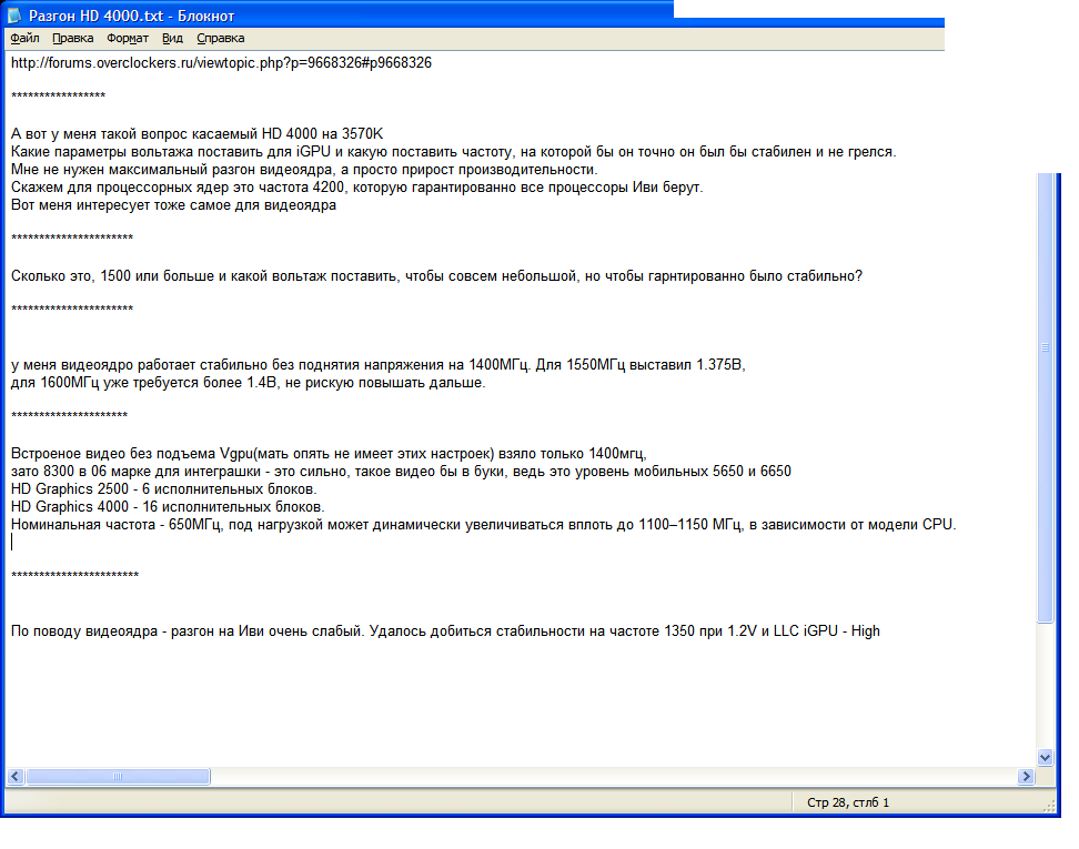 Добавлено спустя 28 минут 8 секунд: Ну вот - 44х102.5 при оффсете 0.04. В итоге 4.5 при 1.28в и температурах в пределах 91 градуса. Надо еще на постоянной напруге помучать - ощущение, что при скачках частот где-то её не хватает. Да и 4.6-4.7 теперь можно попробовать с 0.09 оффсетом.