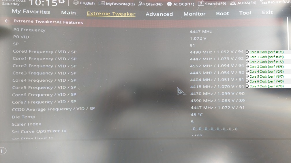 У меня вопрос у кого какие офсеты получились по курве. У меня что-то не адекватное выходит при шине 105: от-25 до -5 (средний SP = 94 лучшее ядро 99, худшее 90). Хочу узнать насколько это нормально. На 7700x они так не разбегались. При шине 100 все -30. Кстати этот FCLK 2200 держит и память гонит лучше моего 7700х.