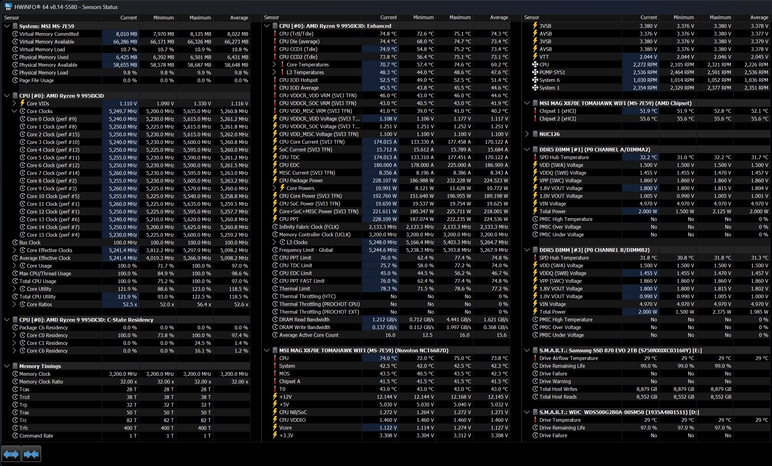 Можешь в фиксированном режиме запустить, без PBO, так лимиты от VFT отключит нафиг, если хочешь много-много Вт увидеть. Множитель 54, 1.2B-1.25В. Если проц более-менее удачный, cinebench пройдет. Но я бы не советовал, ходят слухи, что довольно быстро в таких режимах деградирует.