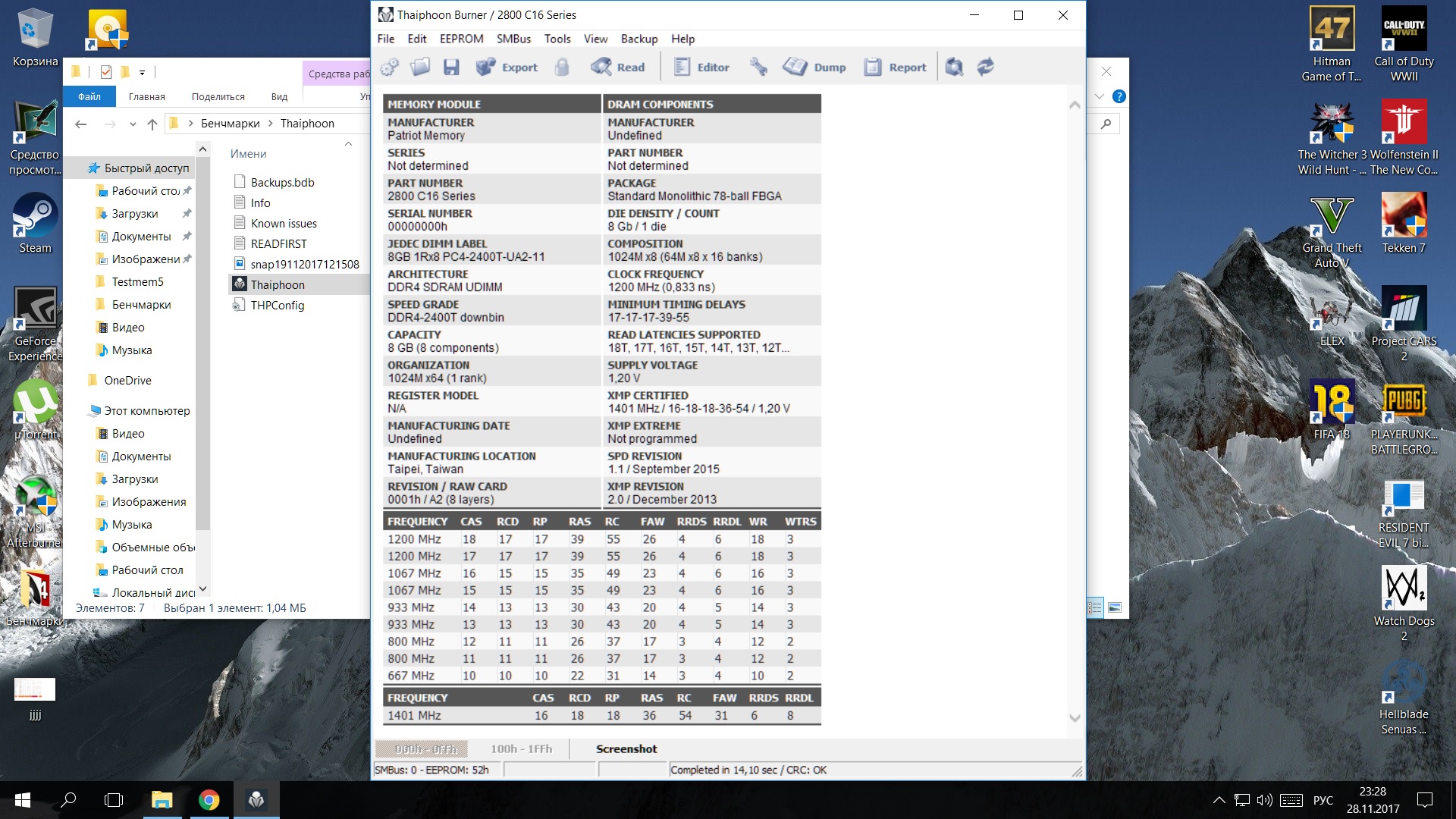 Ребзя, память PATRIOT Viper Elite PVE416G280C6KRD. нигде не могу узнать что за чипы, следовательно какой у нее потенциал и какие тайминги и напряжение ставить. thaiphoon и cpu-z ничего не показывают. Пробовал экспериментировать и калькулятор в обоих случаях выдает какую то дичь. До этого легко и просто corsair vengence lpx 3200 легко взяла 3333 при 1.36v Вобщем рассчитываю на ваш опыт в этом деле