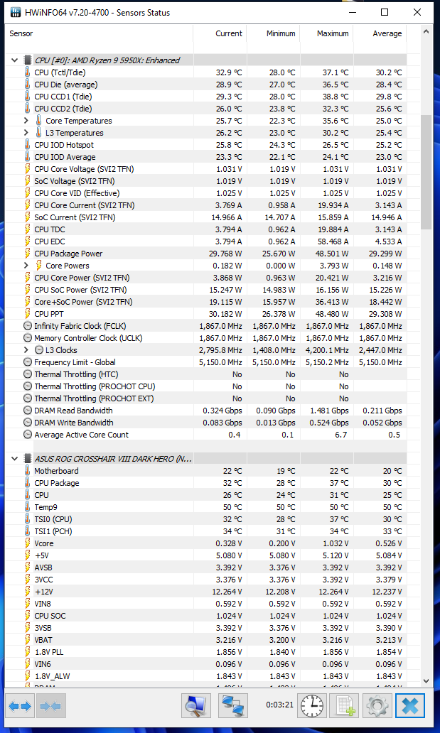 Делюсь болью и страданиями! В начале 2021 года купил я 5950X и материнку ASUS X570-I всё настроил спустя пару месяцев, радовался. Спустя пол года начались приколы, за неделю разок проскакивали ошибки WHEA Logger, по одной, потом через пару месяцев вообще критически ошибки WHEA Logger начали появляться и ребуты, причём под малыми нагрузками при просмотре видео или ютубчика, или при свёрнутой игре на паузе. После перепаковки водоблока на видюхе остались термопрокладки Gelid GP Ultimate, разобрал материнку, поменял термопрокладки на VRM, на обратной стороне VRM и на чипсете и вуаля, всё как рукой сняло. Напряжения CLDO VDDP, VDDG IOD, VDDG CCD получилось снизить до старых пределов. Какая связь между WHEA и охлаждением материнки я ХЗ. Но изначально начало помогать тупо обдув вокруг сокета 120мм вентилем. Теперь и без вентиля работает. Посмотреть бы на материнку в тепловизор.