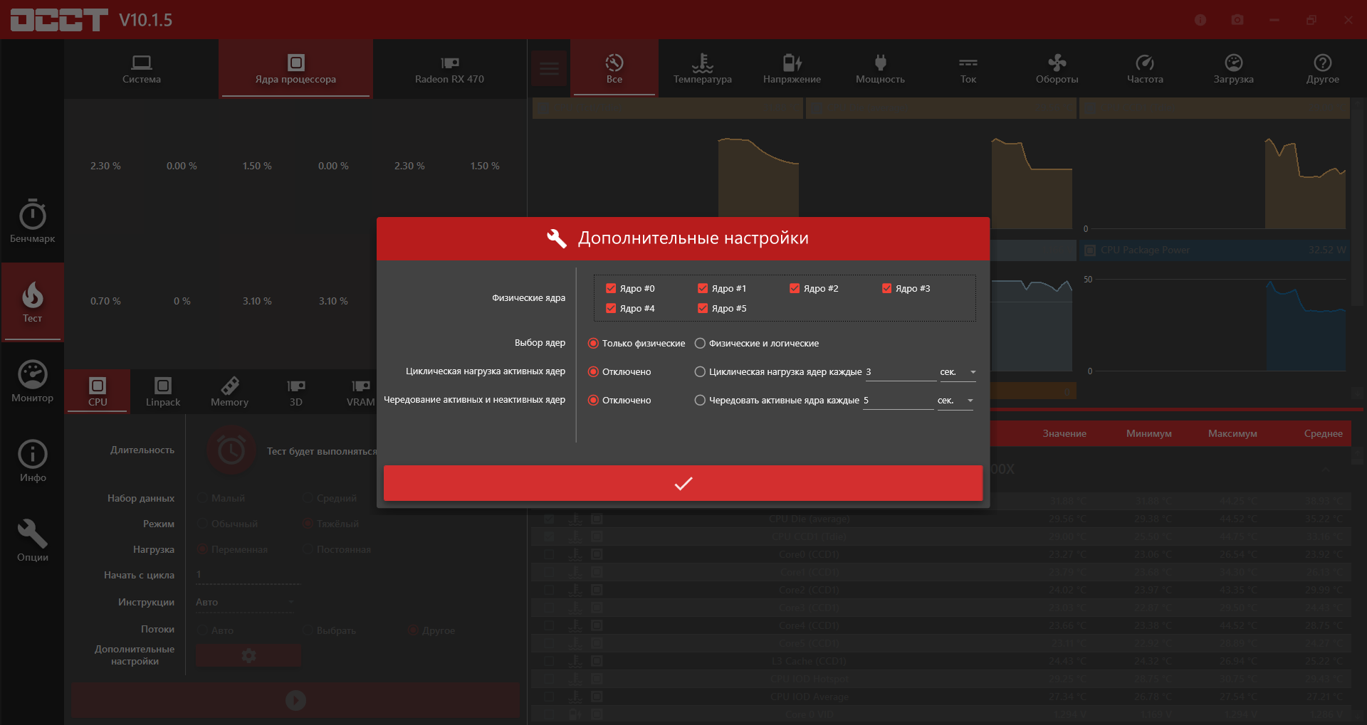 в OCCT только физические выбирать? Если все ядра выбрать - оно покажет на каком ядре ошибка?