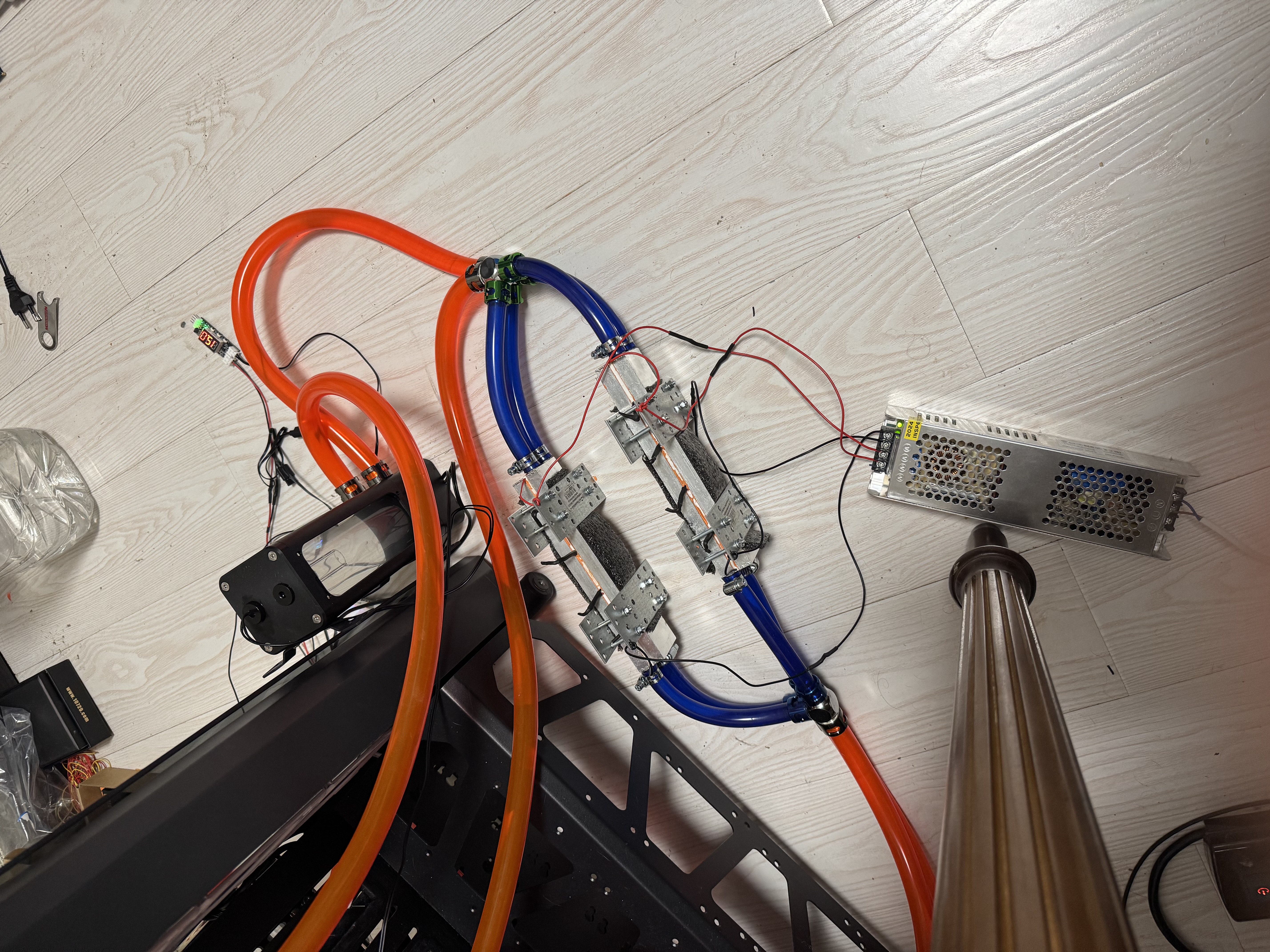 Поменял сегодня мощный 36V питальник на обычный 24V для светодиодных лент. Стало на процентов так тридцать лучше холодить, несмотря на вдвое меньший ток и соответственно намного меньший нагрев "горячего" контура. Судя по всему, для 36V надо удлинять цепочки, чтобы был нормальный COP. Или ставить ещё одну сборку и подключать последовательно. Как-нибудь проверю, когда будет настроение.