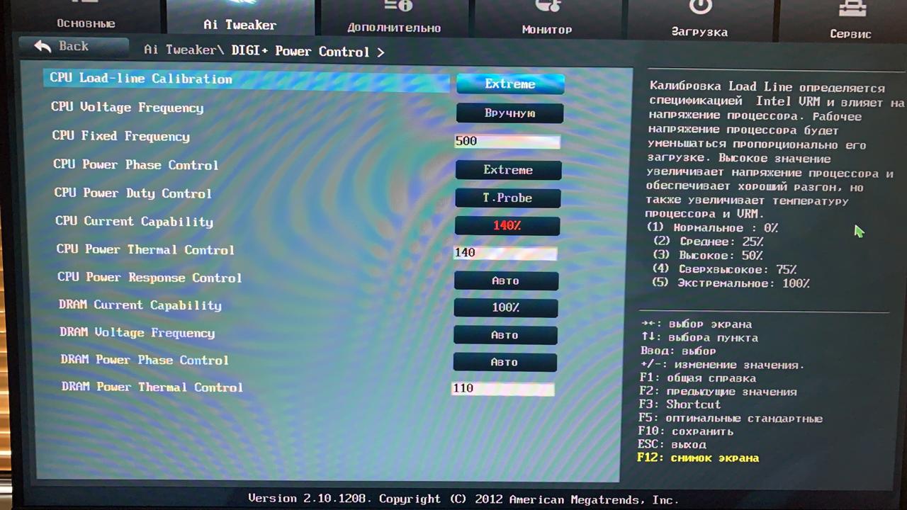 это сколько? у меня тоже типа в стоке (2400), но vccsa как можно догадаться пришлось приподнять из того что вижу я бы сделал: 1. разгонял бы оффсетом онли. древние процы не умели ничего, там выбора не было, приходилось их на полном газу постоянно держать. а эти умеют, отчего ж не использовать это умение. простаивает проц - множитель 16 и напруга вниз до упора, это ж хорошо... 1. cpu pll бы занизил как минимум до 1,75-1,76, даже обнаглел бы и попробовал 1,70. да-да, такой вот парадокс, и стабильности может добавить, и нагрев хоть на чуть-чуть, но снизится. pch тоже занизил бы, вплоть до 1В, хотя конечно тут надо смотреть что на нём понавешено, а то мало ли... и все напруги руками прописал бы, пусть те же самые стоковые цифры, но руками. не люблю я "авто" в силовых вещах... 2. пожалел бы плату и vrm настроил иначе, а именно: llc ultra high - это самый максимум, лучше уж поднять vcore. все частоты, связанные с обратной связью (fixed frequency и response control) поставил бы в ручной режим и на предпоследнюю ступень. то есть не 500, а 400 ну и во втором случае так же (пока что оно вообще в авто стоит). чем выше эти цифры - тем в более тяжёлом режиме трудится vrm, тем сильнее нагрев. оно надо? сдохнет плата и поди потом купи приличную за вменяемые деньги...