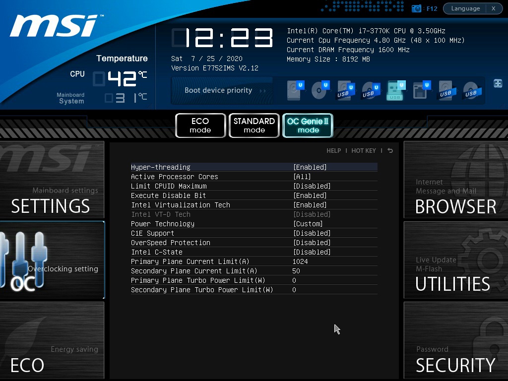 на плате из подписи? странно, у меня есть такая в хозяйстве, энергосберегайки включены начальные, глубокие отключены, с разгоном проблем не было. справедливости ради, у меня на ней стоит 3570К под 1,32В. но помню ставил на неё и 3770К (не самый удачный камень, сейчас он пашет на V-ке 4,5/1,36В), тоже с энергосберегайками гнал. но надо признать, что тяжело было ей с ним дружить, вэшка его же намного легче тащит...