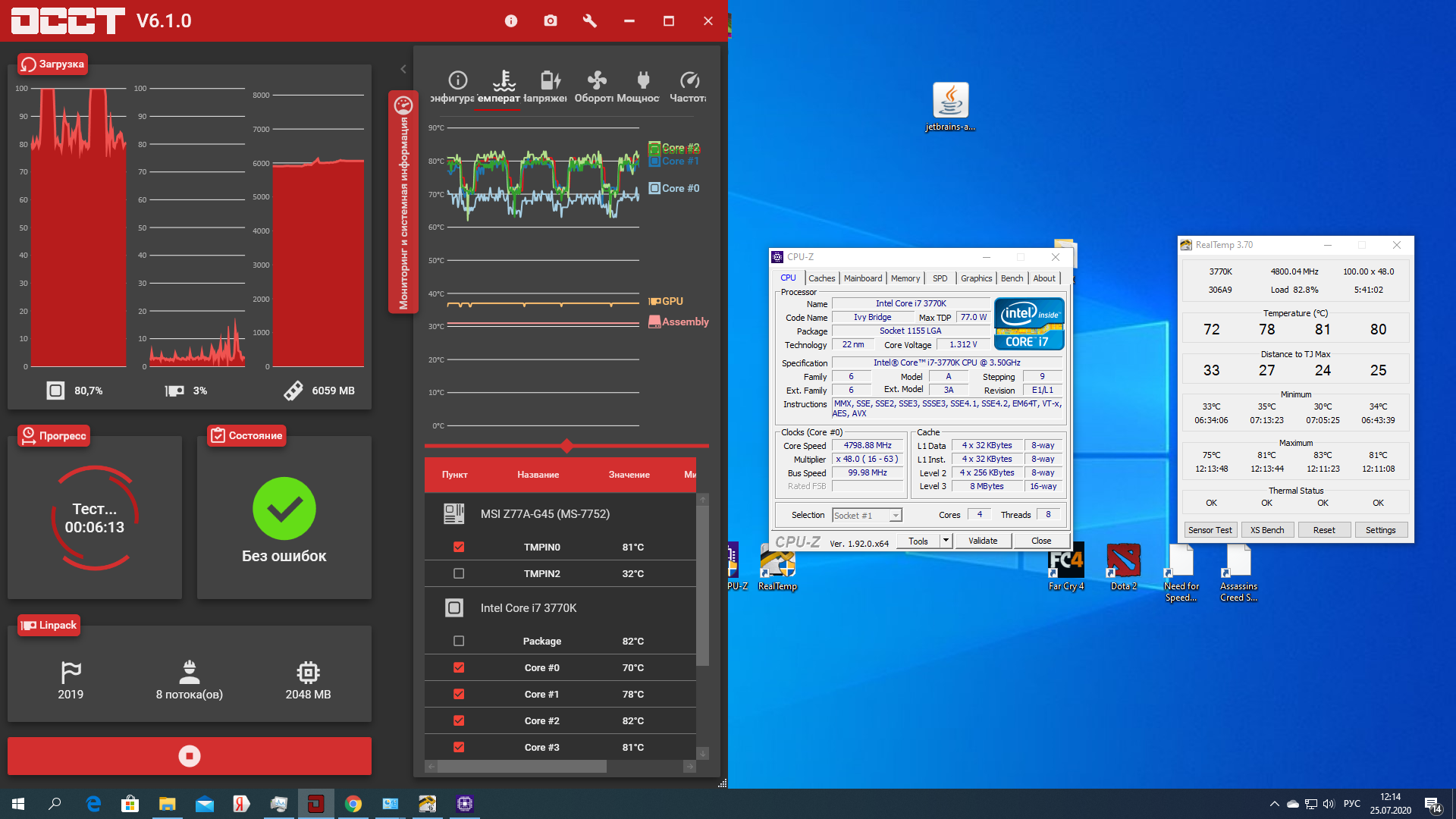 На личном опыте, ни Аида, ни Линпак, ни Прайм - не показательны совсем, самый показательный из стресс-тестов - OCCT: там где Аида, Линпак и Прайм могут крутиться часами, OCCT падает за десяток-другой минут. Но и стабильность в OCCT - тоже не показатель полной стабильности стабильности системы, таковым (на опыте разгона\андервольта почти десятка процев), абсолютно внезапно является Dota 2 (не ржать!), причём не сама игра, а просмотр реплеев. Я сам в неё не играю года с 2013, наверное, однако до сих пор стоит на случай если захочется с процем поковыряться: если проц стабилен в течение 3-5 прогонов реплеев - он стабилен везде, исключений я не наблюдал ни на своём 3770K, ни на X3460, ни на fx 8350, ни на 7700k и т.д. и т.п. Единственное что, думаю актуально это только для восьми-, максимум двенадцатипоточников, современные 8\16+ процы вряд ли уже получится так тестировать.
