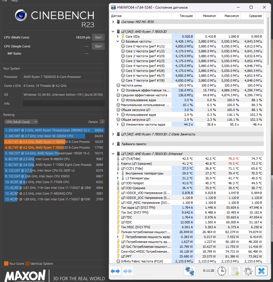 У меня меньше выходит. 17900-18100, с разными настройками. Системе пару дней, Вин11 24. Какие у тебя настройки биоса, я про лимиты и курву.