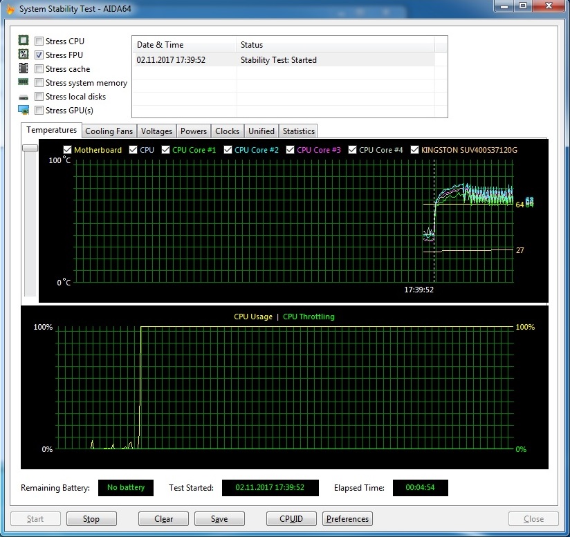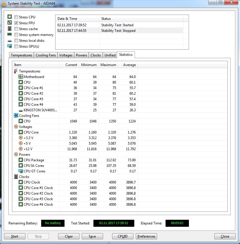 Добрый день, народ. Подскажите... Имеется мать MSI Z77-G41, проц i7 2600k, кулер какой-то Thermaltake silent 1156, память 8x2 1866Мгц. Биос не обновлял, версия не помню какая. Решил чуть подразогнать, выставил в биосе просто множитель на 40, чтобы получить 4Ггц. Запустил тест AIDA64 минут на пять, и при достижении температуры на каком-нибудь ядре 76 град, происходит периодический кратковременный сброс частоты с 4Ггц до 3.4Ггц. Т.е. походу это троттлинг... Смотрю в чужих тестах, там темепературы и по более есть, и я так понял без троттлингов. Из-за чего это? Нужно крутить остальные настройки в биосе, чтобы 4Ггц стабильно было? Без разгона держит под этим же тестом 65 град. и без троттлинга.