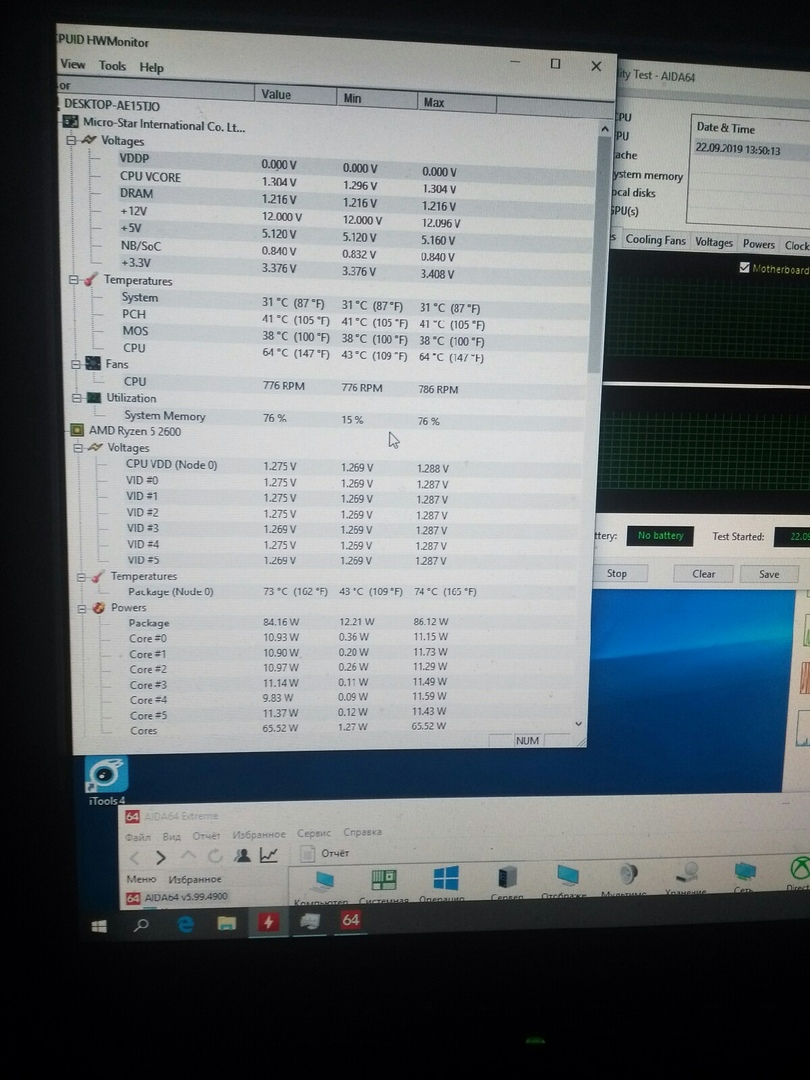 Люди, можете помочь разобраться какая программа врет. Разогнал свой 2600 до 4.1 при 1.35В. Но в прогонке стресс-теста ОССТ везде пишет разные вольтажи. Каким цифрам верить?