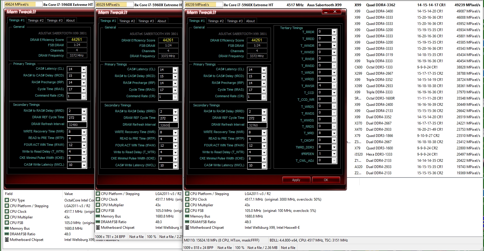 ну так я правду сказал. тоесть да если там покрутить tREFI чуть может что то увеличиться но погоды то это явно не сделает. на твоем 5960Х да где псп уже за 90К можно ради галочки покрутить