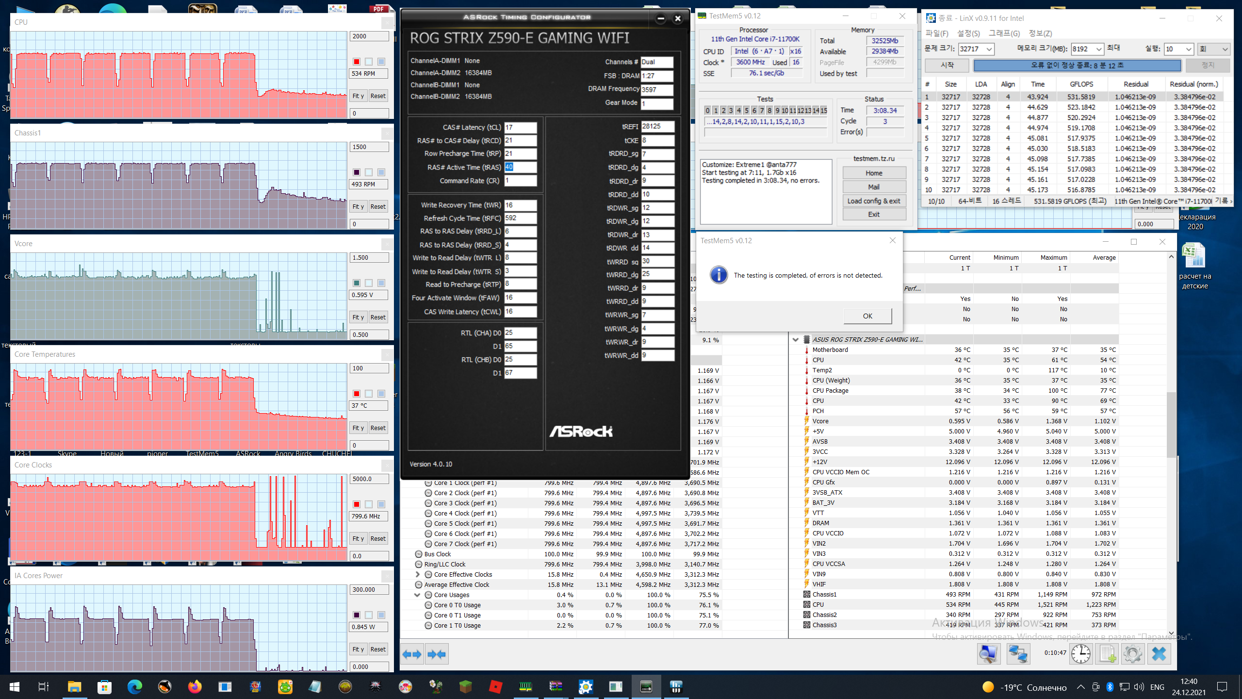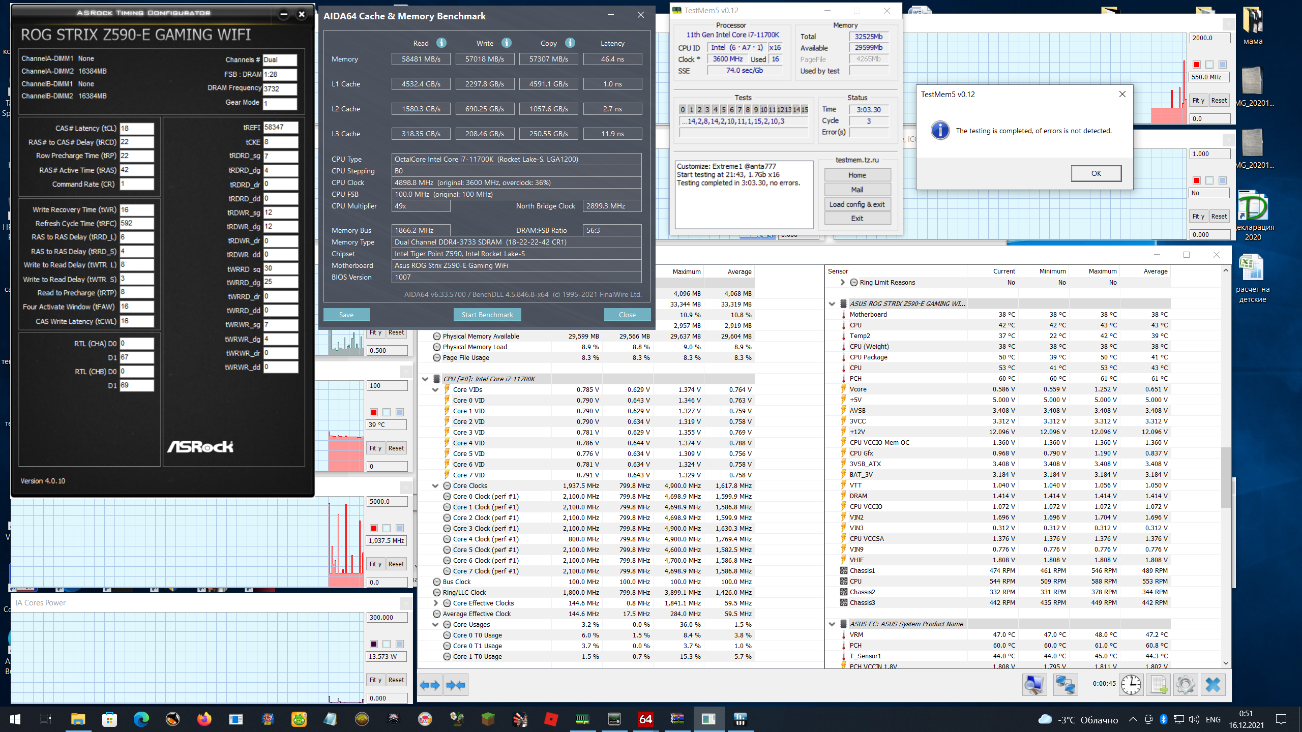 Но во время продолжительных тестов и поиска стабильных минимальных таймингов памяти для данной частоты что-то произошло, и ТМ5 стал сыпать ошибками даже с профилем заведомо стабильных таймингов. Выше задирать IO и SA пока не стал, а провел тестирование памяти с этой же частотой и таимингами, но в гир2 - ошибок нет. Наводит на мысль, что вероятно деградировал контроллер памяти. Дальше экспериментировать с напругами стало боязно.
