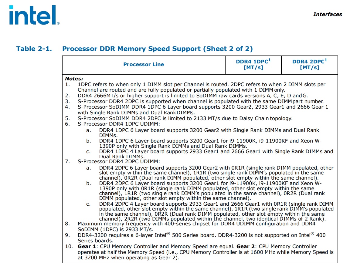 Спецификации Интел. Четко указано, что память на 3200 только в режиме Геар 2. Исключение 11900К/Ф. Для плат на базе Z490 - только 2933 МГц с любым процессором. Источник: https://www.intel.ru/content/www/ru/ru/ ... urces.html