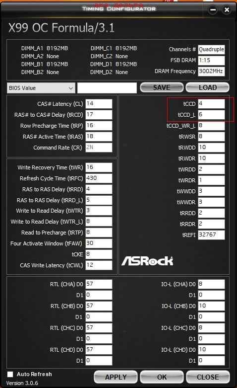 мде... на асроке все по православному ака напрямую , а на асусе через дельту к минималке(от tCCD=4) устанавливается этот тайминг ака tCCD_L=2 будет в биосе на асусе. . + если память хреновая(ну или микроновский двуранг) то чтоб ходить на 3200+, надо 3 ставить ака 7 на асроке.