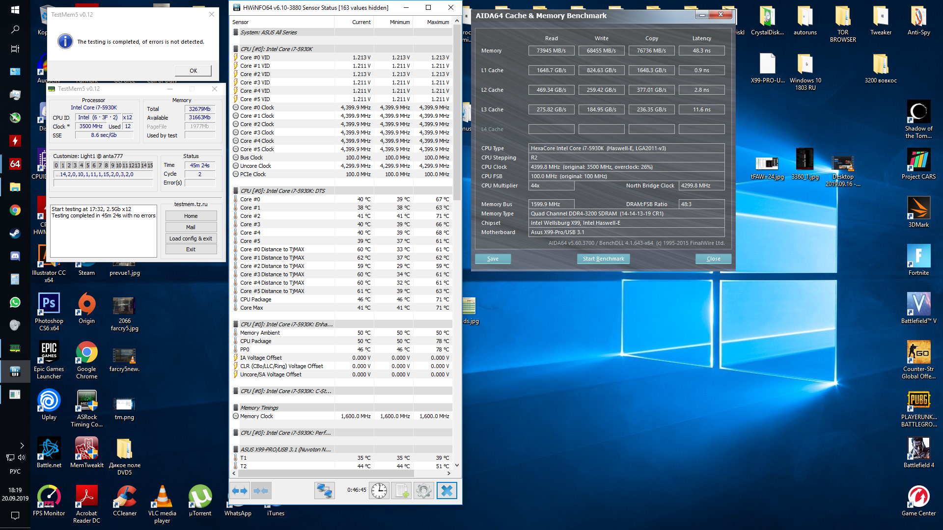 в прошлый раз было 194 настройки как на ваших скринах выставил ко всему прочему на ваших скринах с 5820к тоже 73к чтение с таймингами которые больше моих, думаю это о чем то говорит