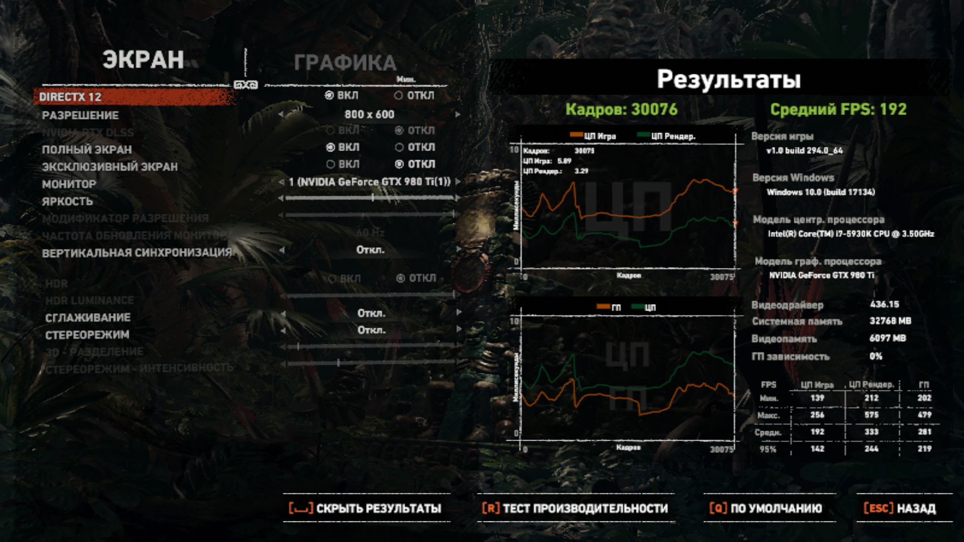 отл, + дрова 417.71 для видюх со стажем либо затестить 440.23(эт в тему нормального запуска на dx12) и настройки у меня не такие - я тестил в окне + скэйл разрешения 20%+(мин что можно поставить)+пресет highest + для скрина возвращал скэйл в 100%(иначе не разберёшь что там )