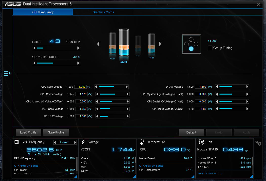 Ой, фу, я этой софтиной асусовской не пользуюсь даже - в самом начале попробовал как собрал комп на z97... и удалил: система себя странно с ней ведет Ну, либо я до конца ей не "проникся" Короче, мне в биосе всё проще настроить! Не исключаю что это она во всём виновата