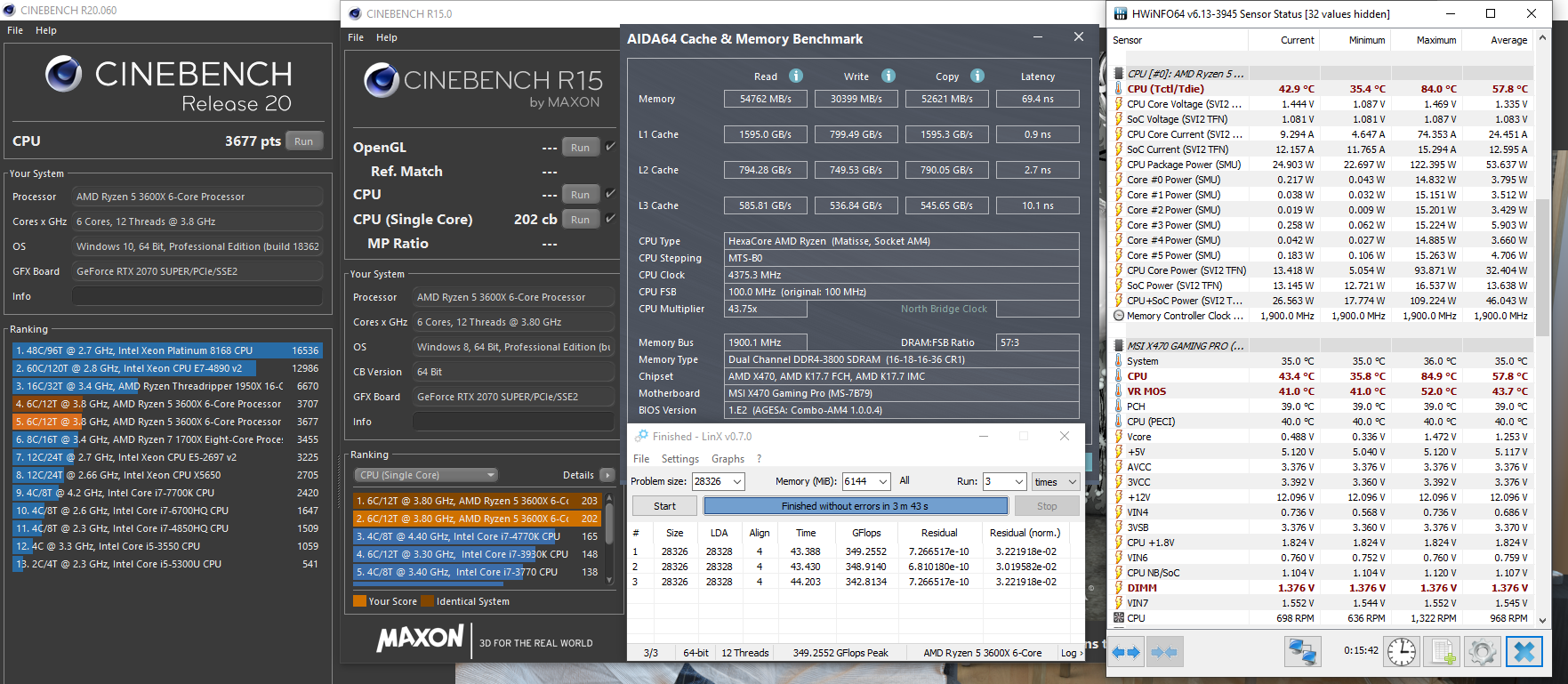 Сегодня MSI беты биосов AMD ComboPI1.0.0.4 Patch B (SMU v46.54) выпустила для мамок x470. После обновления и применения профиля куратора темы температура в Линксе с 89 до 84 упала при сохранении количества попугаев. Теперь у меня так тесты показывают: