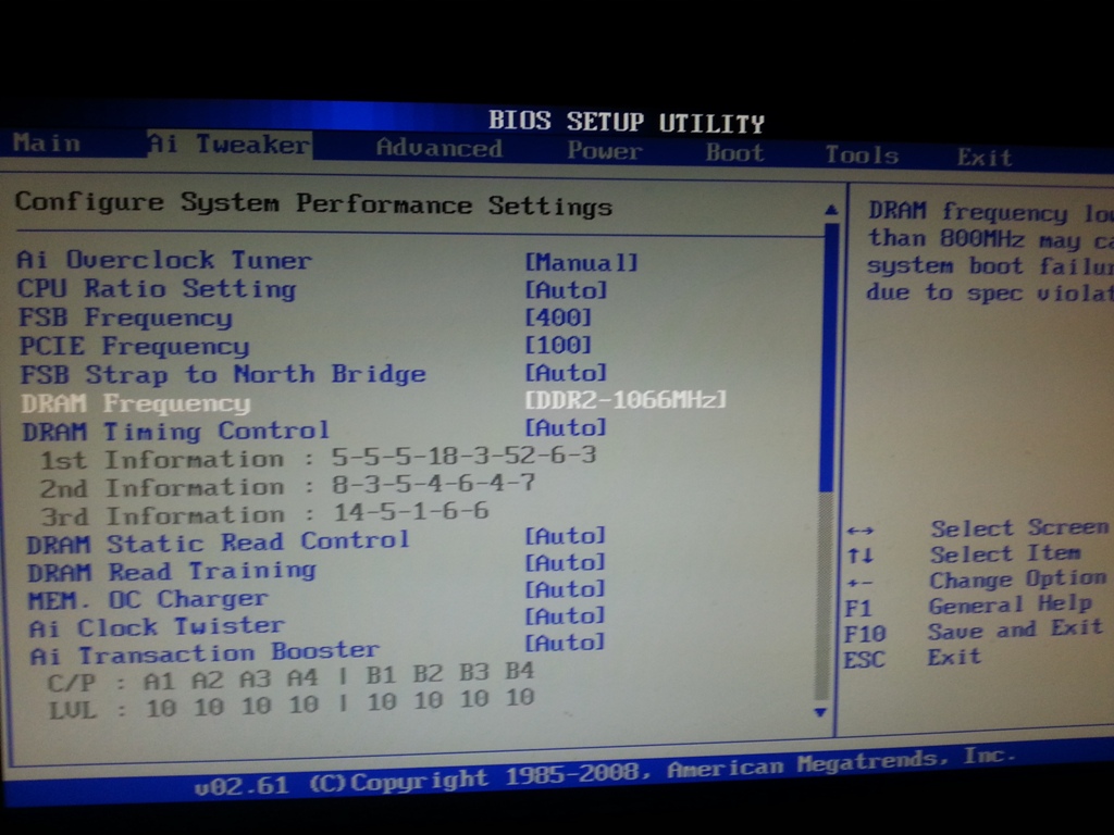Ох уж этот Asus. Попробуйте FSB Strap to North Bridge выставить на 400. И DRAM Voltage поставить 1.8