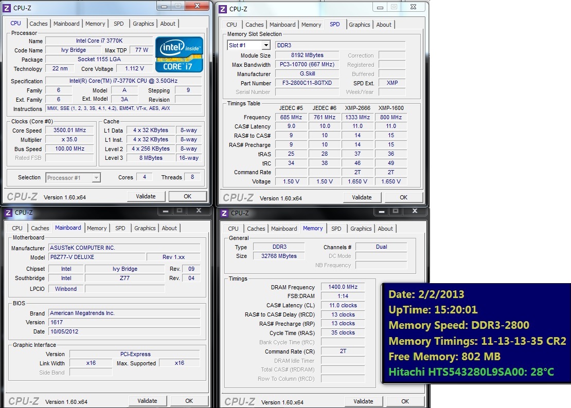 А что там верить если память прям вынутая с коробки на 2400 MHz работает? Или разве тут не про i7-3770K на Z77 разговор идёт? Причём никакая НЕ отборная память у меня, - я притопал ногами в ближайший магазин, и взял ту память что поближе лежала подешевле. И ещё у меня есть планки 2x4GB от малоизвестной фирмы "AVEXIR", - ещё дешевле. - Был самый-самый дешёвый. И этот набор тоже из коробки сразу работает на 2400 MHz. И НЕ важно что XMP это можно назвать разгон, да в мануале материнки отмечено что 2400 MHz это разгон. Ну и что, какая разнца? У меня на планках памяти намечатано 2400 MHz, да я и не против что это для материнки можно назвать разгоном. Мне вообще-то лень языком трепать разгон это или нет. Работает прям из коробки на 2400 MHz, - да и ладно. И мне думать не надо, - сразу без моего вмешательства работают разные наборы от разных производителей на 2400 MHz, - да и ладно.