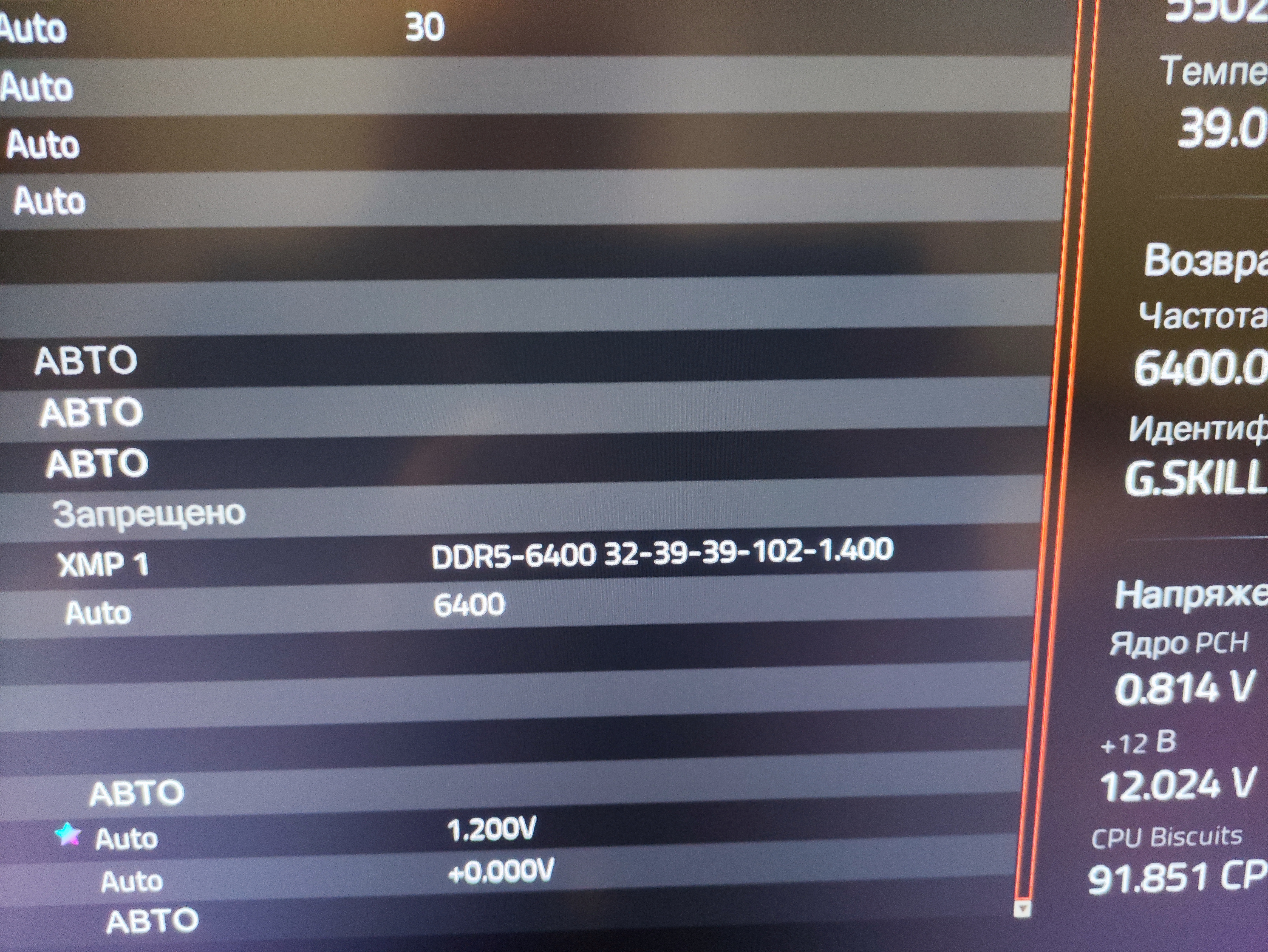 у меня память по умолчанию 1.45 на 7200, xmp также выставляет сам 1.45, сейчас память в разгоне 7600, если vdd ниже 1.45 ошибки в тестах.