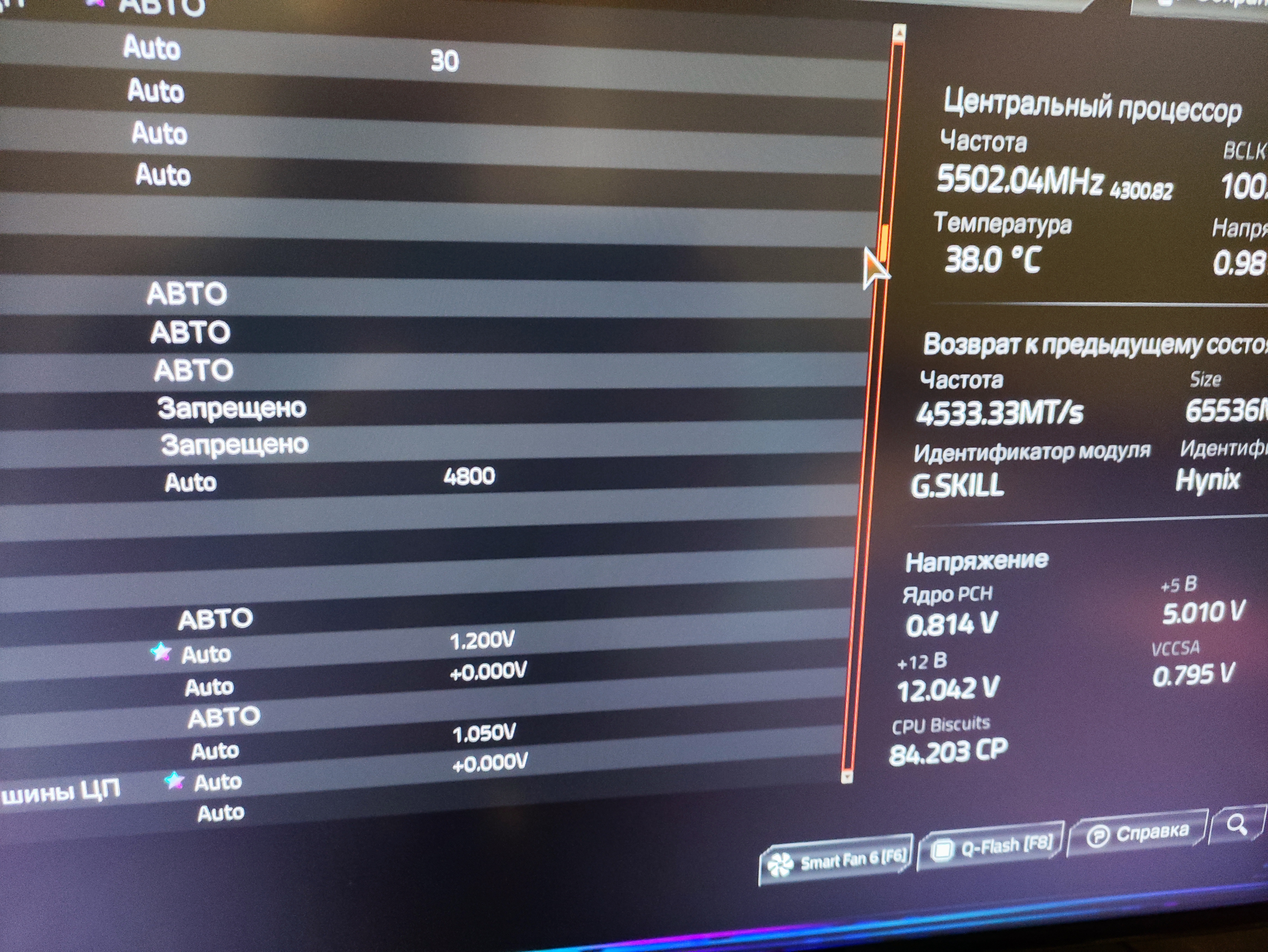 Биос предпоследний, последний 5 дней назад вышел. Я не зафиксировал сколько чего было при 100гр. Помню, что vcore 1.28, где то, а vids точно выше 1.4 в R23 и такой же в простое. Дельта была между ними 200-300. В игре все было норм я мониторил на экране, порядка 1.24 на обоих. Затем я снижаю частоты с Р и Е на 100 и становится 5400 и 4300. На 5500 и 4400 я прогонял по пол часа Vt3 R23 Occt cpu. Без ошибок и высоких значений. После снижения комп не выключал и через пару часов начал смотреть видео 4к и спустя мин 30 такая фигня.