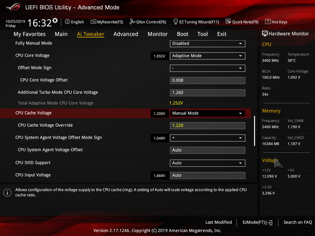 Подскажите пожалуйста еще пару моментов. Методом подбора мне удалось выяснить что кэш работает на частоте 3.5GHz при напряжение 1.220v в (manual mode).Но при сохранении параметров и перезагрузки с последующим входом в bios напряжения (CPU Cashe Voltage) плавает от 1.193 до 1.215! Далее я пробовал сменить режим работы на Ofsset Mode или Adaptive Mode,после сохранения параметров и перезагрузки система зависает намертво ещё на стадии загрузки bios. Из за чего такое может происходить? Тоесть по сути рнапряжения работает только в режимах Manual mode и Auto.