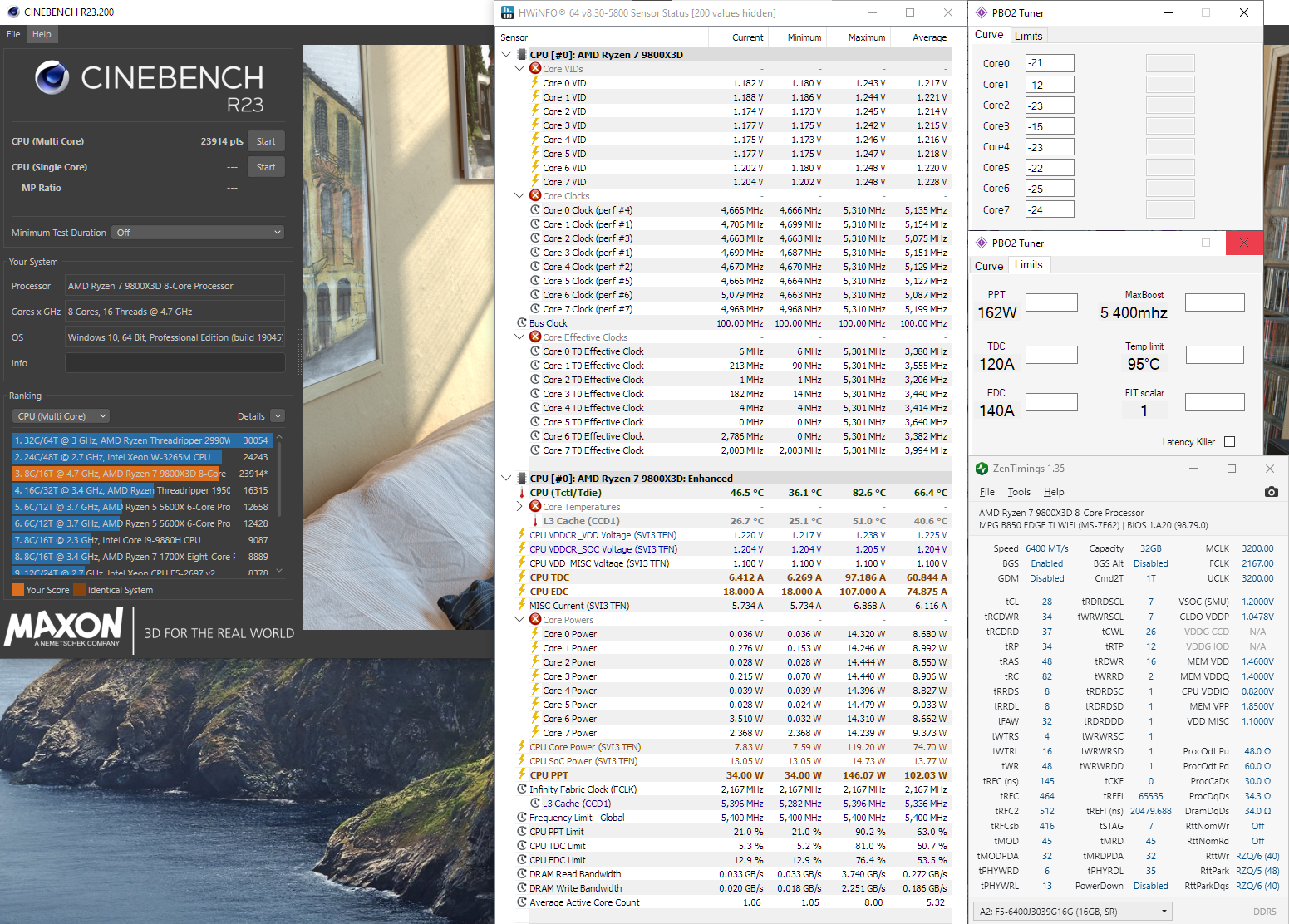 Единственное у меня L3 кэш при 110w 59C градусов, а при потреблении 140w в y-cruncher SVT был 67С, может из-за нагрева кэша PBO не дает бустить? У тебя при 140W 51C всего