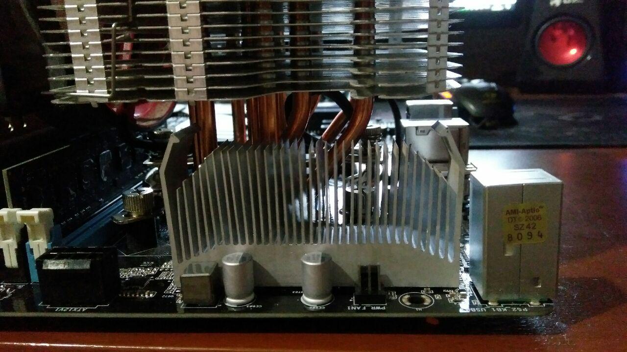 Снова притащили мне эту Z97 Anniversary... Сейчас первым делом выкинул дюральку с VRM... отпилил Радиатор от АМ2 кулера, посадил на термоклей, когда подсохнет прикручу на шурупы 50-60мм вентилятор и буду дальше пробовать разгон, надеюсь шутдауны пропадут.