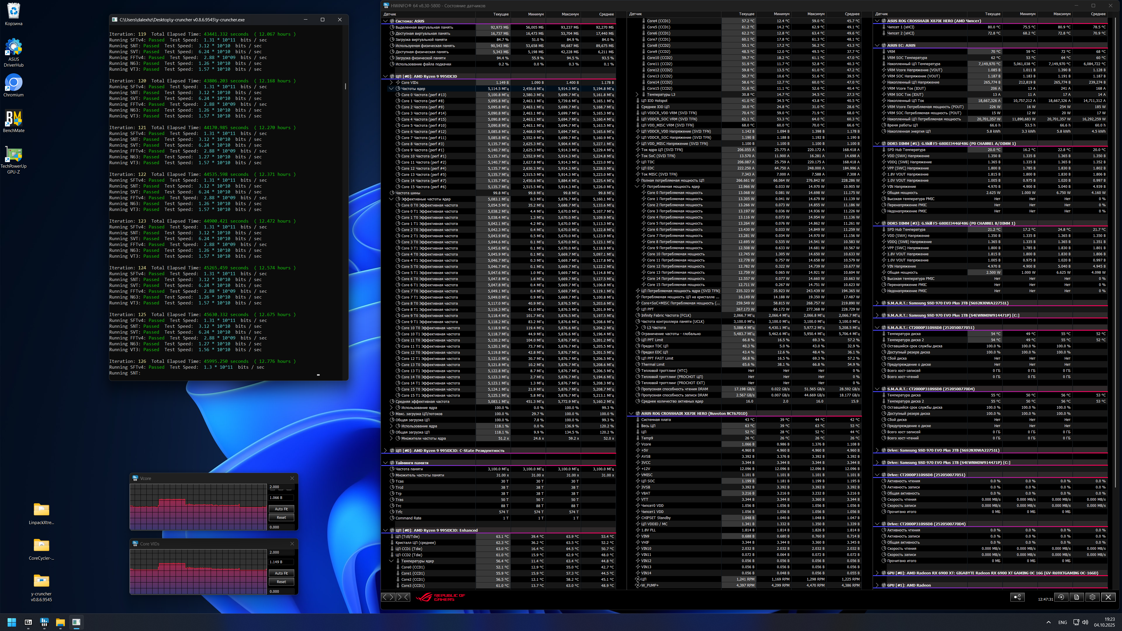 Вообщем картина такая: 1. Память-фабрика - "safe" 6000CL28 GDM 1.4V, FCLK 2000, все напряжения Auto. 2. CPU - та же "курва", буст +150mhz, все настройки CCX/L3 те же, что и пару часов назад, когда всё рандомно крашилось ---------------------- Промеж.итог - снова все эти кранчеры, синебенчеры и прочие тестмемы и мемтесты, проходят, как ни в чем не бывало. Неясно только, можно ли из этого сделать какой-то вывод?