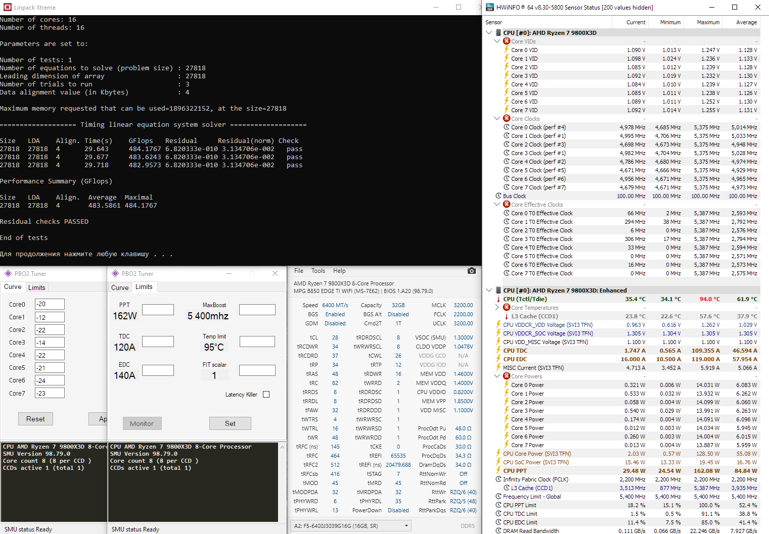 Я тоже посмеивался, пока не столкнулся с тем, что мой проц не вывозит даже "умеренную курву" с бустом +150, и как думаешь где? Да в Cinebench R23. Я честно удивился, вспоминая опыт Zen3, где синебенч был так-себе нагрузкой, и проц, с курвой почти в пол, в ней даже не потел. При том, что с этой же парой CO / Fmax.boost спокойно проходятся всякие y-кранчеры, linpack икстримы, и прочие RAM и неRAM тесты. Сначала грешил на FCLK 2200, но погонял Vt3, замерил флопсы линпаком в 2133 - 2166 - 2200, ничего подозрительного, растут как и положено. Поэтому собственно и интересовался, что за AVX юзает синебенч, уж больно он тяжелый оказался для Zen5, и чувствительный к лишним 150 мгц.