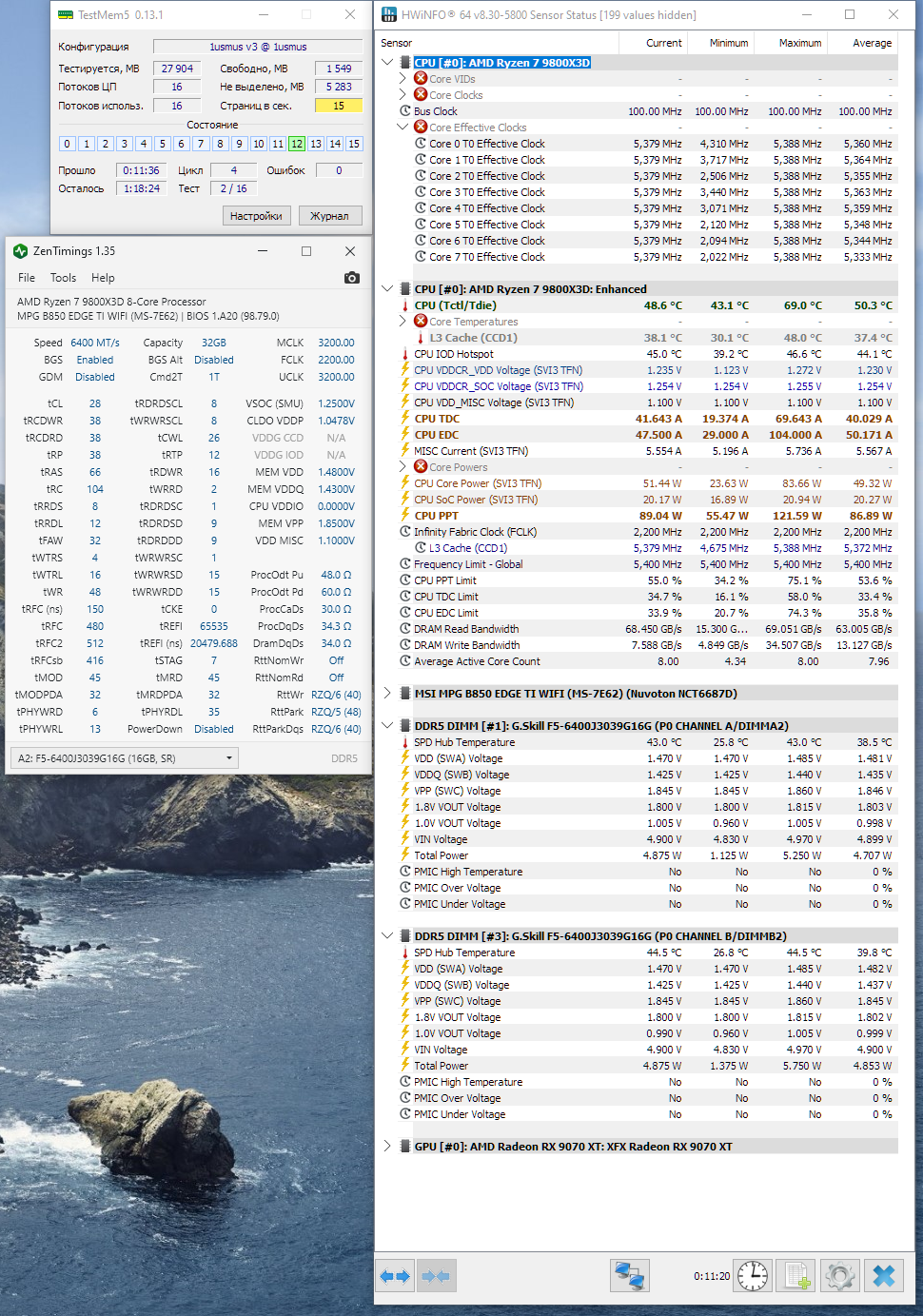 Zen timings показывает еще vsoc 1,3v , остальной мониторинг показывает нормально.