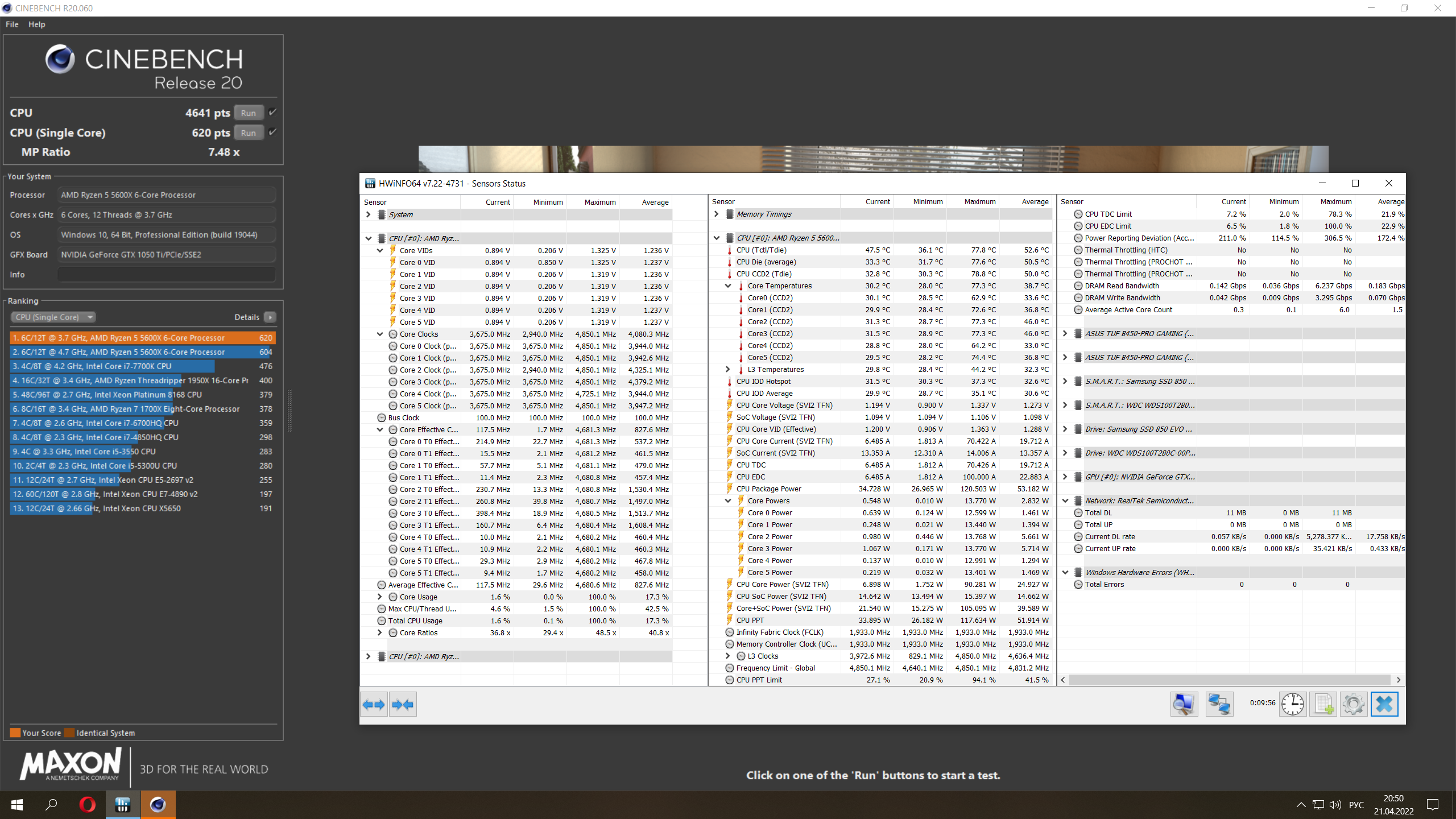 Чтобы понять, что именно, нужны скрины не за 11 сек., а как я приложил ниже, отдельно ST и MT, просто открываете HWInfo, стартуете CBR20 и PrtScr по окончании.